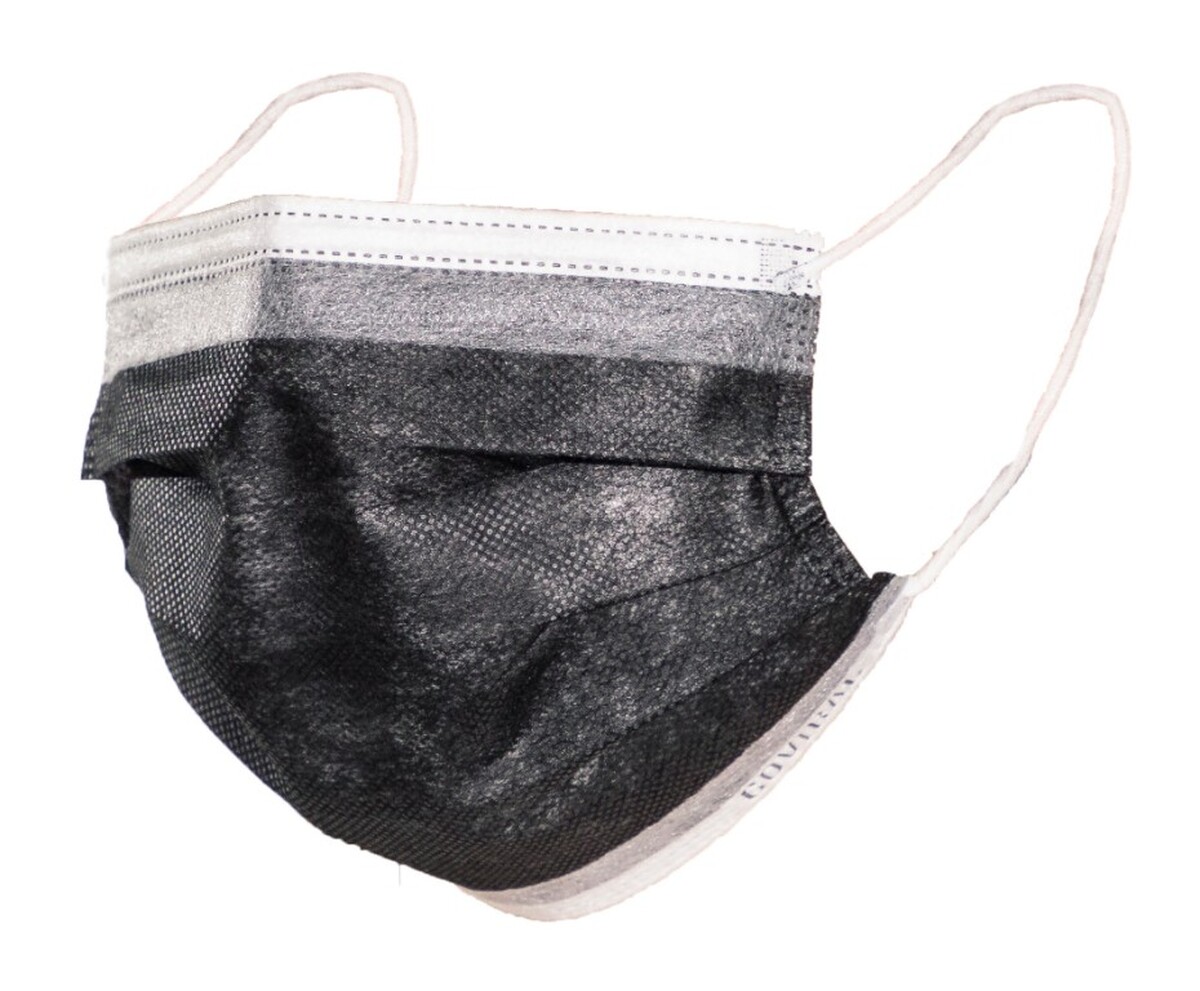 Rúška na tvár s gumičkou – chirurgické sivočierne, 50 ks