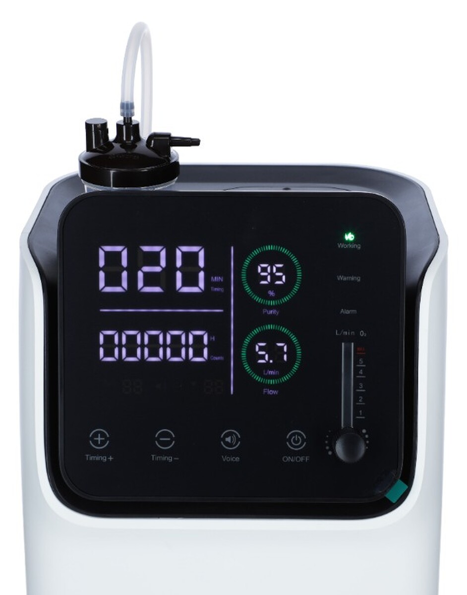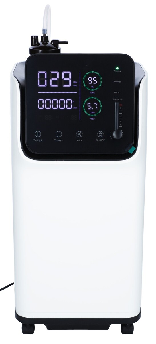 Profesionálny a výkonný kyslíkový koncentrátor vám zabezpečí plynulý a trvalý prítok až 95 % čistého kyslíka aj pri najvyššom možnom výkone 5,8 l/min, vhodný na domáce použitie, aj do zdravotníckych zariadení.