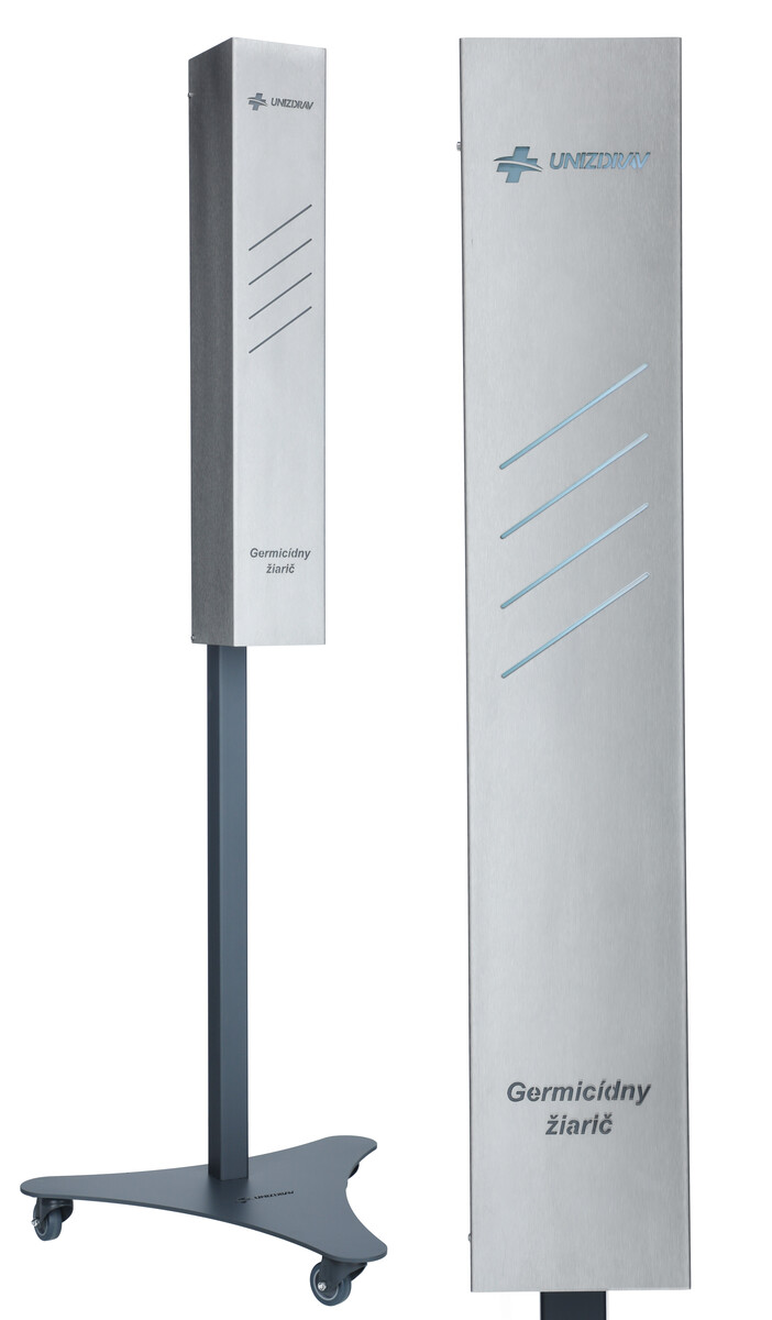 Uzavretý mobilný germicídny žiarič UNIZDRAV poskytuje účinnú dezinfekciu prietorov, v ktorých zbavuje vzduch mikroorganizmov, baktérií a vírusov.