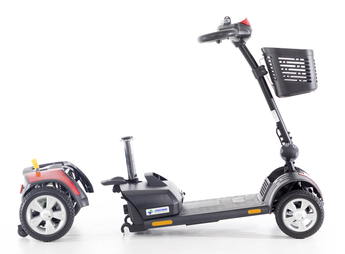 Skúter sa po jeho rozložení pohodlne vojde aj do kufra menšieho auta.