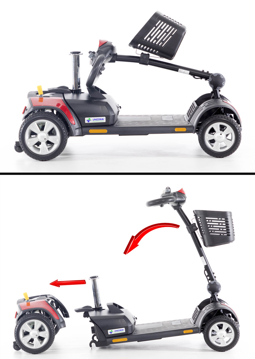 Skúter si jednoducho zložíte, dáte do kufra auta, a po príjazde do cieľa znovu jednoducho rozložíte do pôvodného stavu - a možete znovu jazdiť.