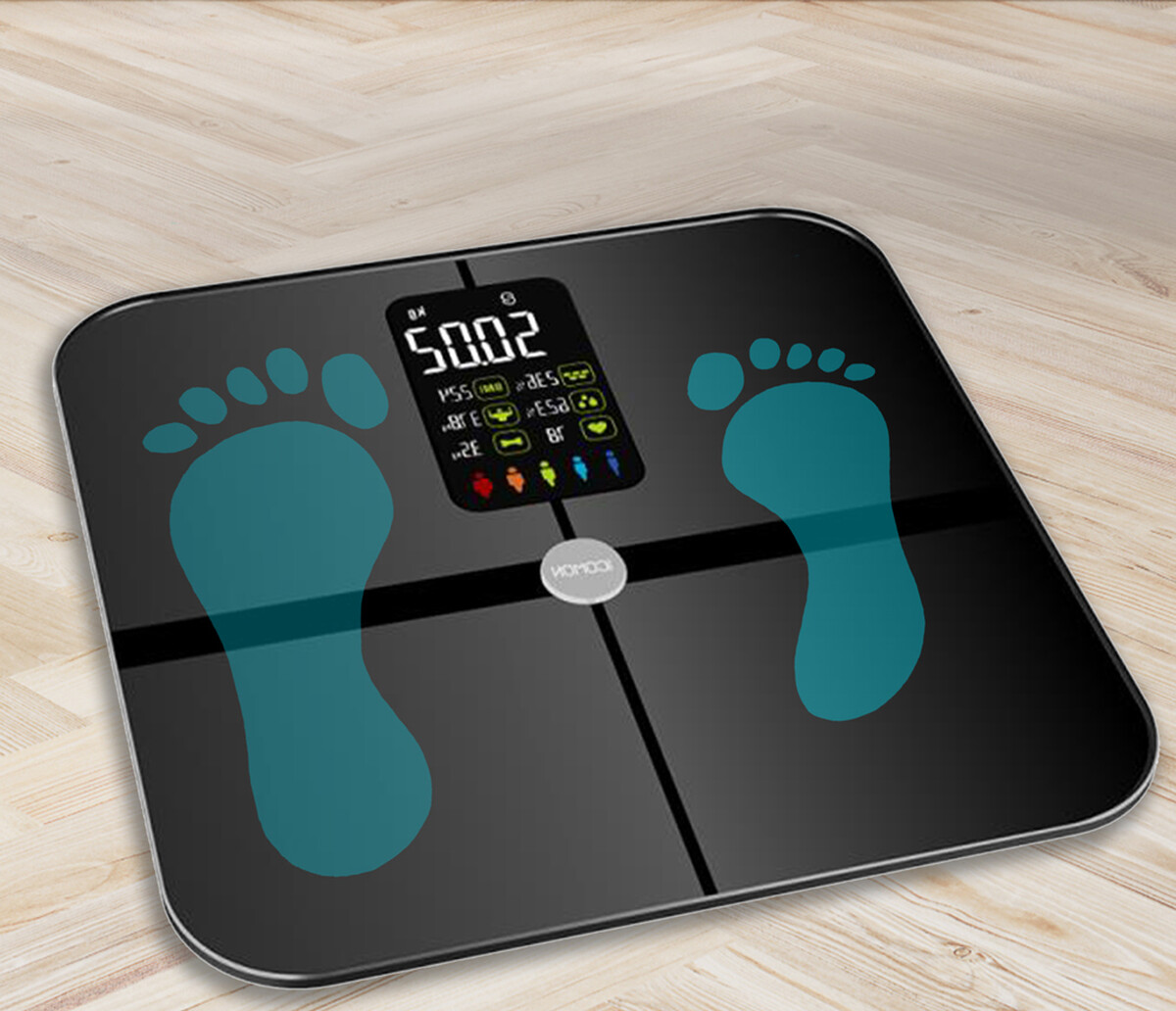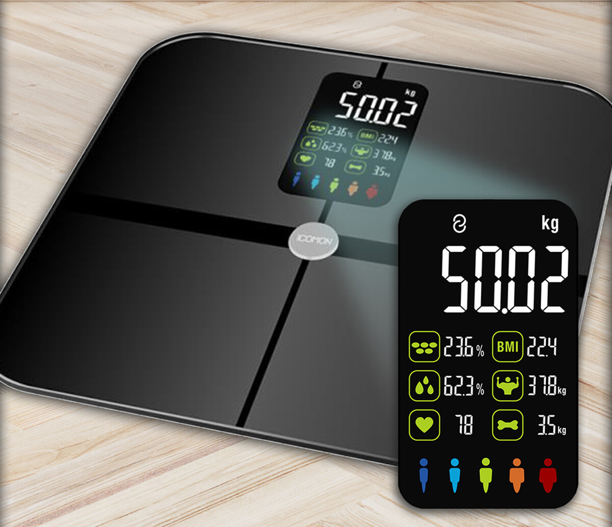 Váha disponuje prídavným farebným LED displejom, na ktorom sa ihneď po odvážení zobrazí okrem samotnej telesnej hmotnosti aj ďalších 7 dôležitých telesných parametrov, a to:
