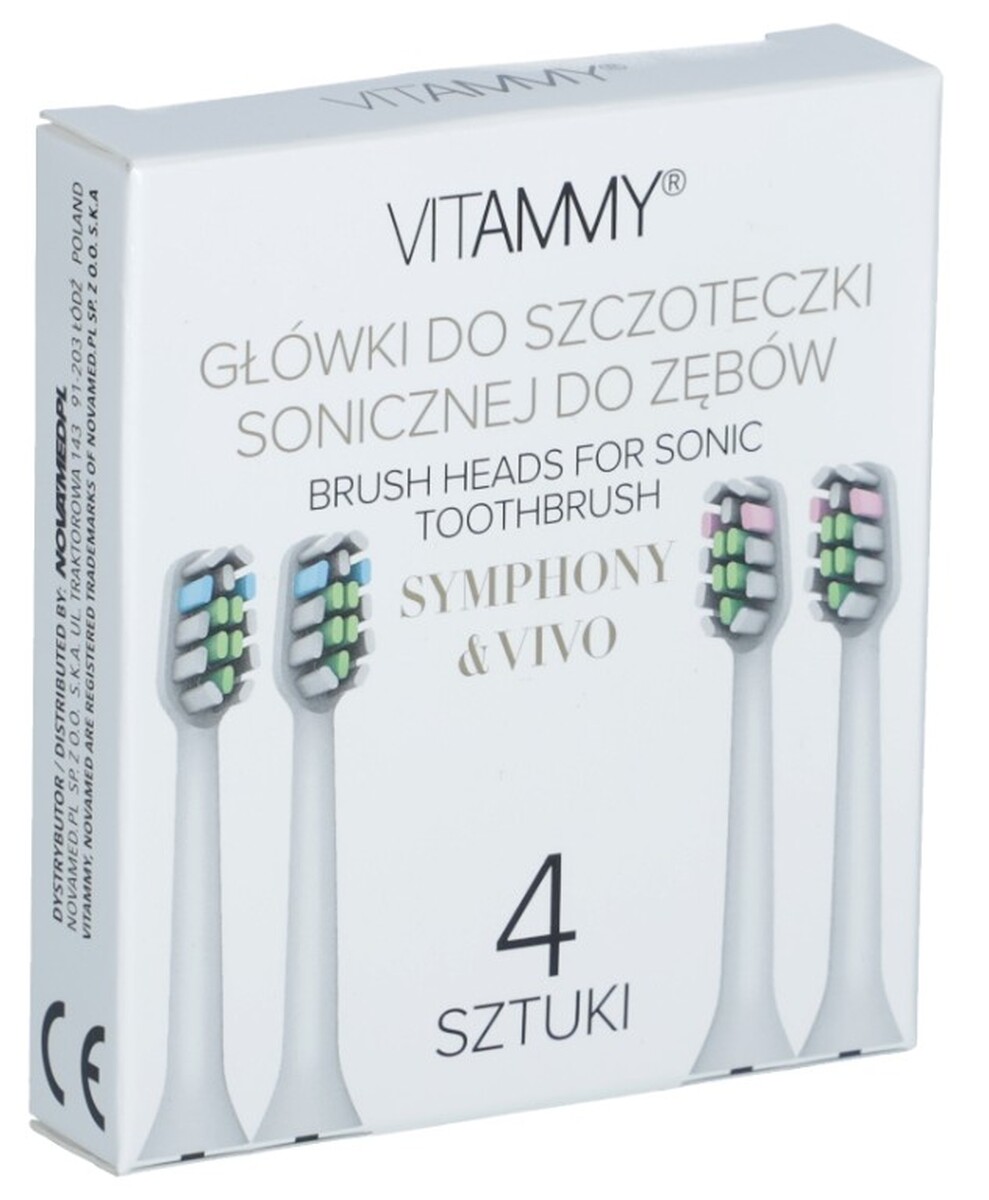 Nadstavce sú kompatibilné so sonickými zubnými kefkami VITAMMY SYMPHONY. Hlavice by sa mali meniť každé tri mesiace.