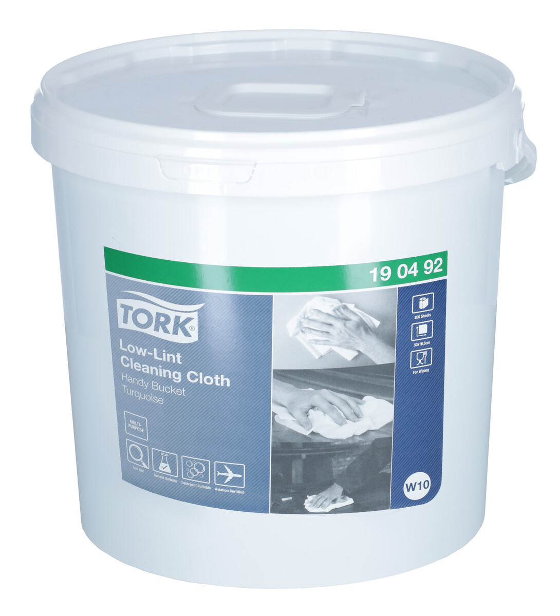 Utierky Tork Low-Lint sú dodávané v kotúči vo vedre, čo umožňuje vytvorenie vlastných vlhčených obrúskov s použitím chemikálií podľa potreby. Jednorazové dávkovanie v útržkoch a jednoducho uzatvárateľné veko zabraňujú ich vyschnutiu.