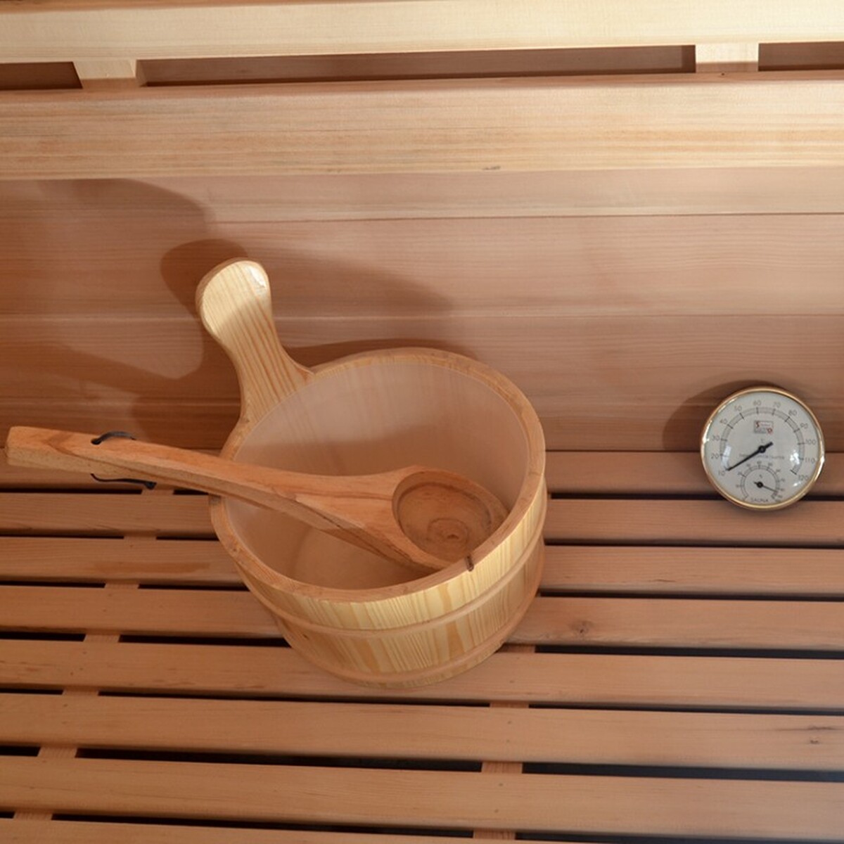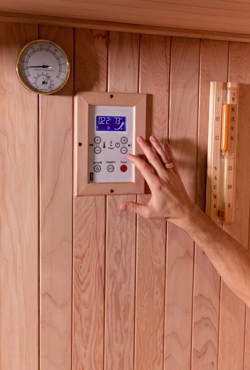 Veľkou výhodou tejto saunovej kabíny je jednoduché a rýchle zostavenie. Používanie spríjemní praktický ovládací panel s USB portom, funkciou bluetooth, rádio FM a MP3 prehrávač. K dispozícii sú samozrejme reproduktory, ďalej takisto osvetlenie, saunové kamene, drevené vedierko s lyžicou, presýpacie hodiny od 5 do 15 min. a hygrotermograf na zaznamenávanie teploty a vlhkosti.
