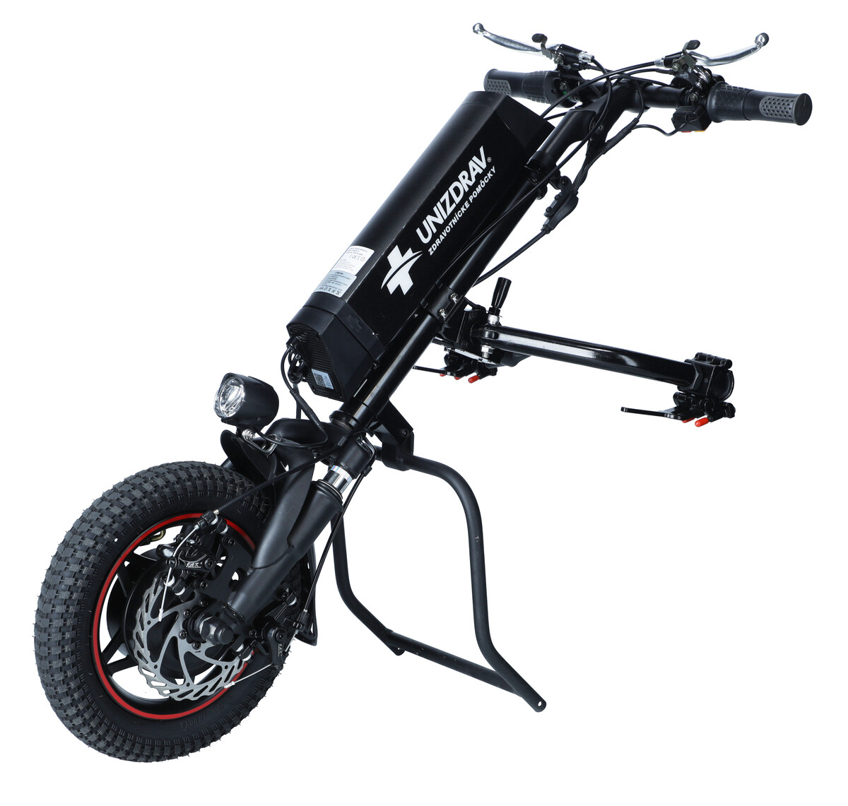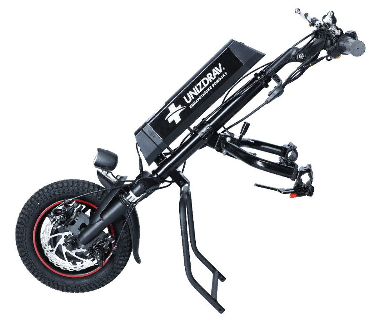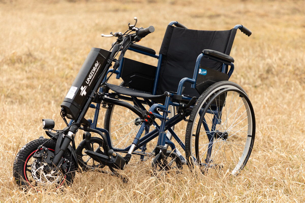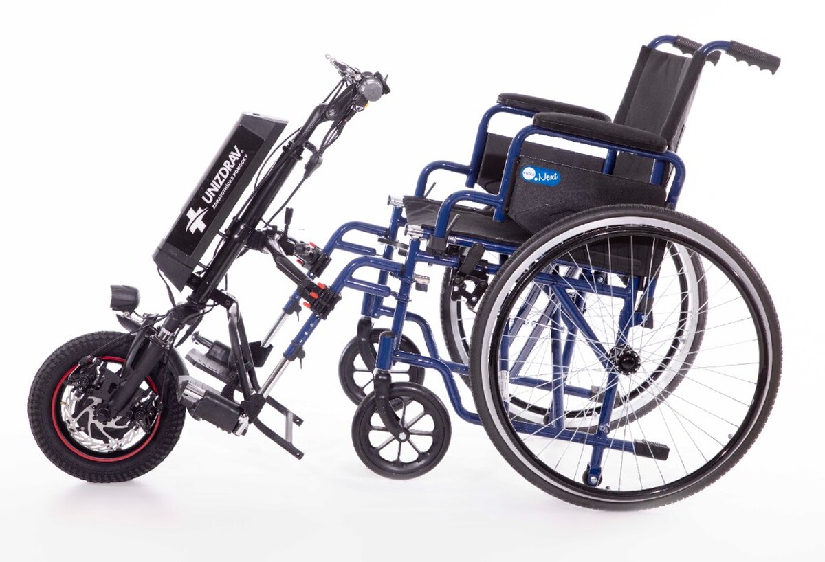 Prídavný pohon UNIZDRAV je možné ľahko pripojiť k takmer akémukoľvek aktívnemu invalidnému vozíku a vytvoriť z neho motorizovanú jednotku, ktorá vás pomôže ochrániť pred nadmerným namáhaním.