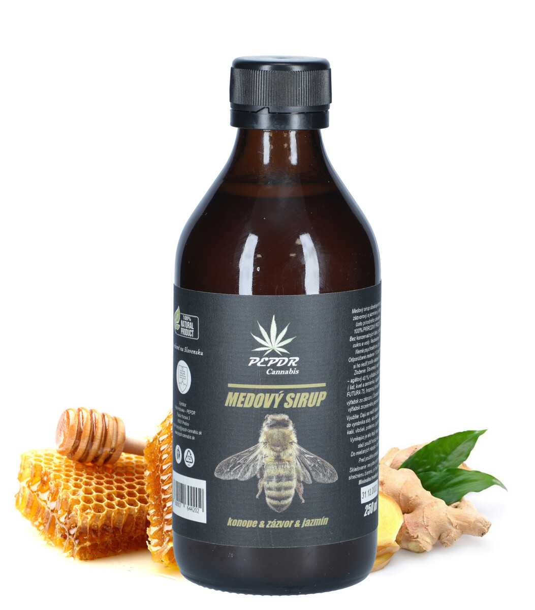 Medový sirup s výťažkami z konope, jazmínu a zázvoru predstavuje čisto prírodný ručne vyrábaný sirup ideálny na zdravšiu formu sladenia nápojov a pokrmov.