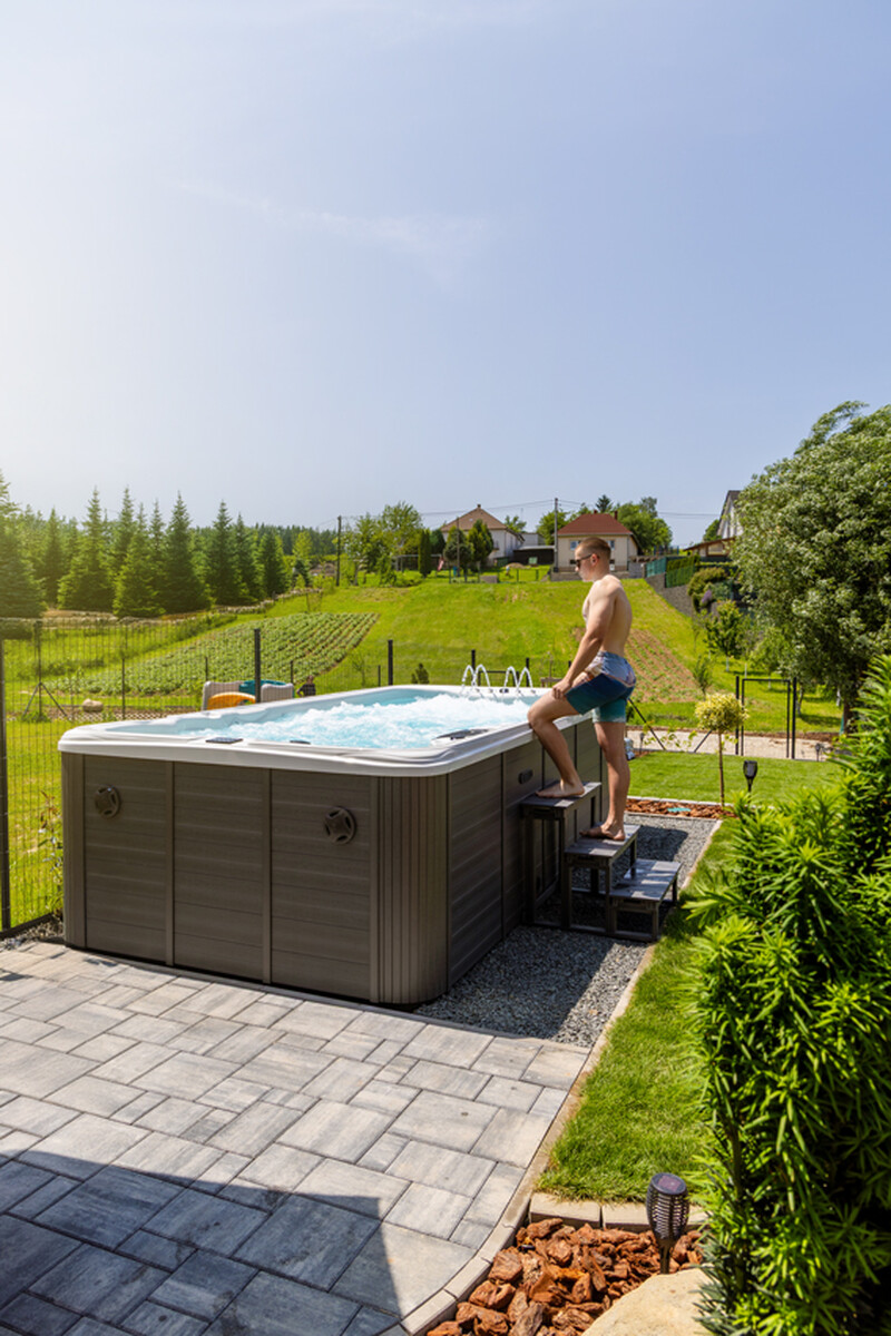 My vám ho ponúkame v elegantnom dizajne, vyhotovenom z prémiových materiálov a vybavenom najmodernejšími technológiami na zaistenie maximálneho komfortu a relaxu. Vírivku SwimSpa môžete umiestniť štandardne na povrch alebo mierne zapustiť (so zachovaním prístupu na úrdžbu a servis), čím získate funkčný, esteticky prívetivý koncept.
