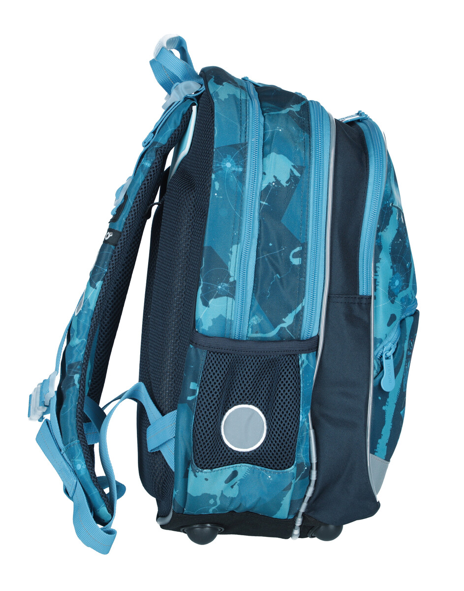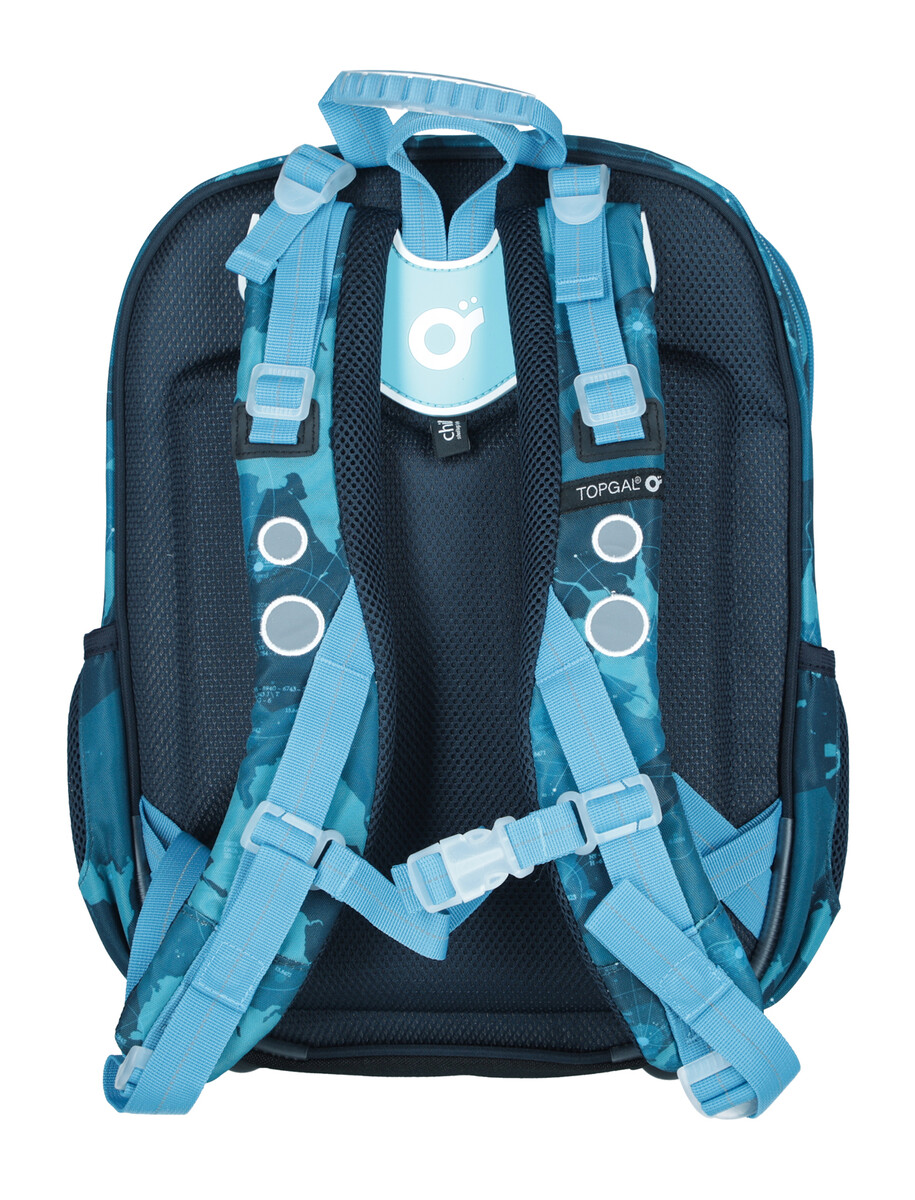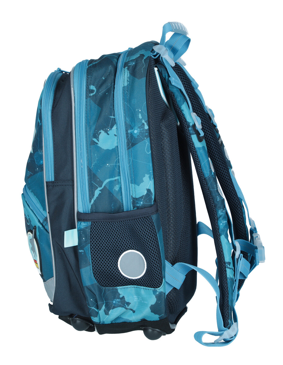 O správne držanie školskej tašky na chrbte sa postará spevnený chrbát z mäkkej lisovanej peny, vystužené nastaviteľné ramenné popruhy a hrudný pás. Popruhy sú anatomicky tvarované a postave sa prispôsobujú upínaním v hornej a spodnej časti, vďaka čomu budú správne sedieť aj na drobnom chrbte dieťaťa. Končeky popruhov sú vybavené magnetkami, takže nebudú pri nosení prekážať. Výškovo nastaviteľný hrudný pásik zasa zaistí, že popruhy neskĺznu ani z úzkych ramien.