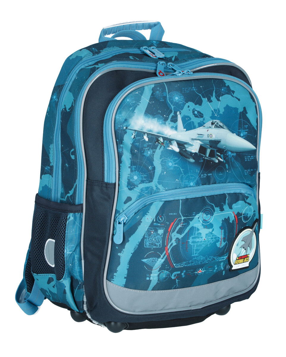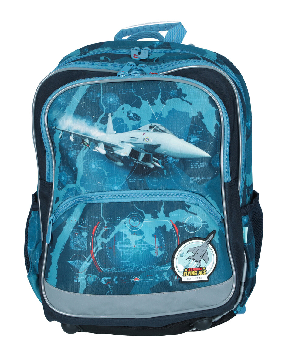 Školská taška BAZI pre malých pilotov je vďaka svojim kompaktným rozmerom a nízkej hmotnosti ideálna pre malých školákov na prvom stupni základných škôl. Dizajn batoha v modrej farbe s lietadlami a stíhačkami určite poteší nejedného chlapca a váha necelý 1 kilogram zasa každého rodiča.