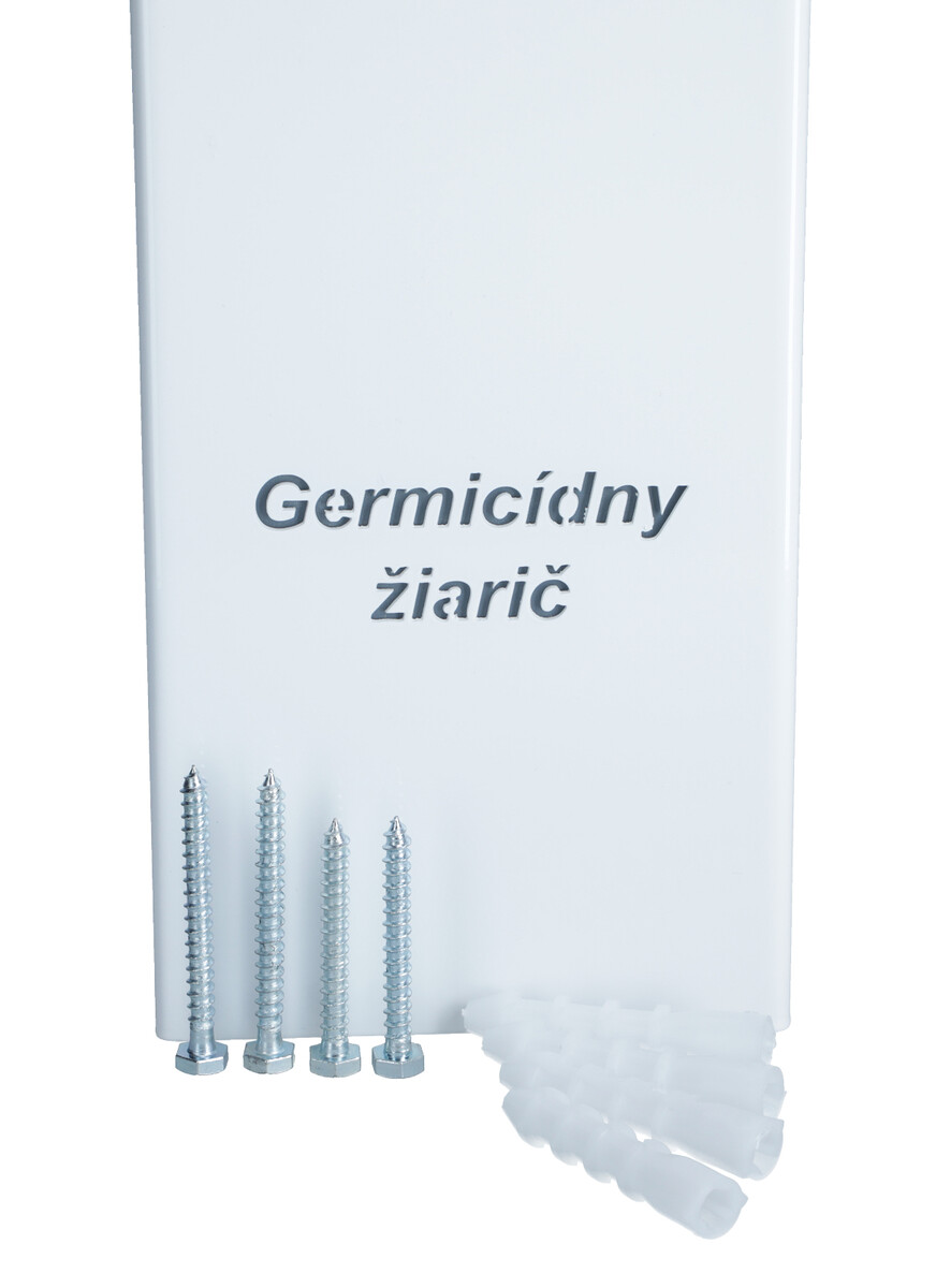 Súčasťou germicídneho žiariča UNIZDRAV je statický nástenný stojan, kábel, skrutky, príchytky a predpripravené diery na montáž na stenu.