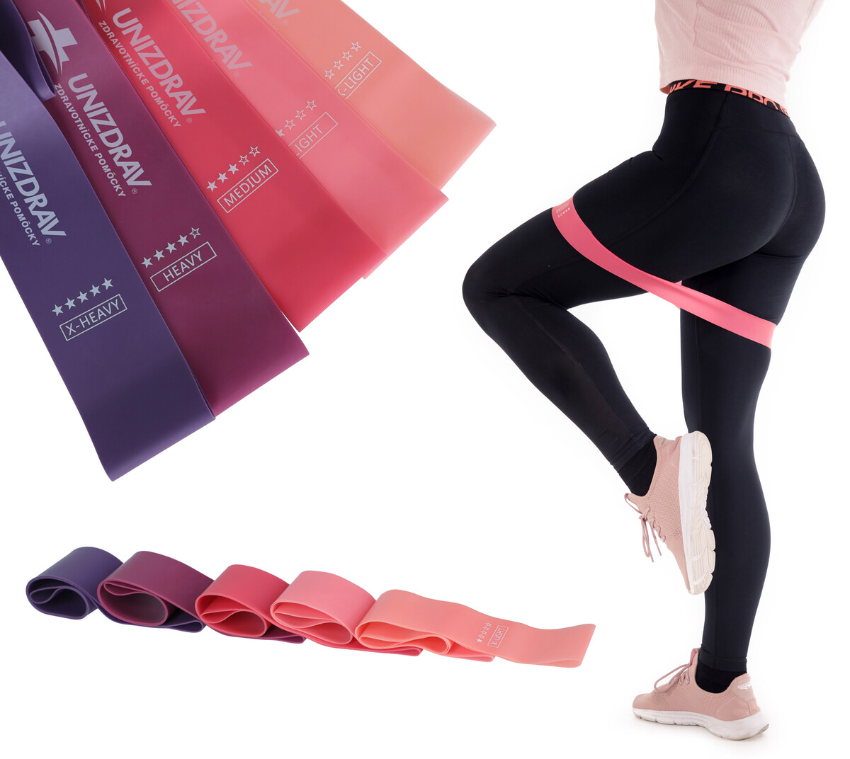Odporové posilňovacie gumy ružové, sada 5 ks