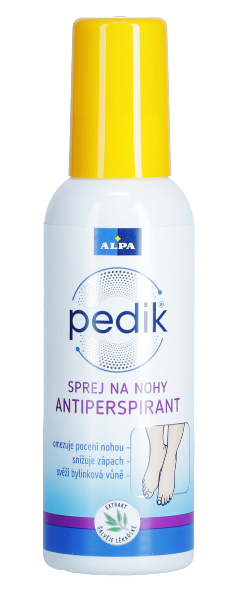 Pedik antiperspirant sprej je rýchloschnúci kozmetický prípravok s upokojujúcim extraktom zo šalvie ideálny na každodenné ošetrenie nôh. Antiperspiračná prísada výrazne obmedzuje potenie a zápach nôh.