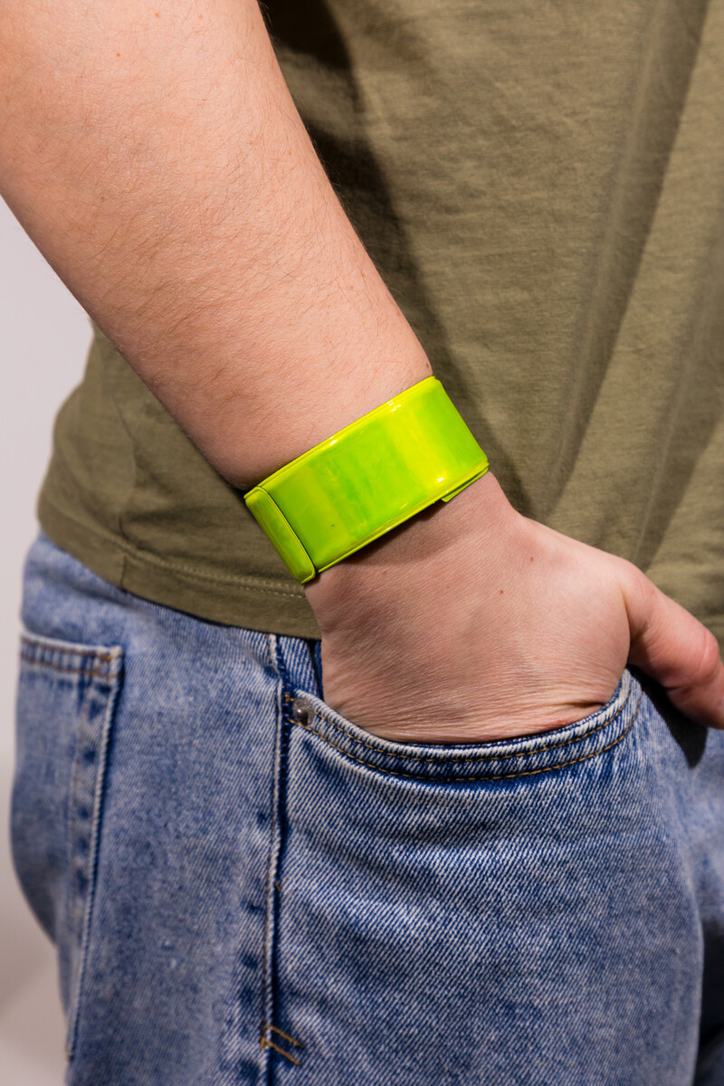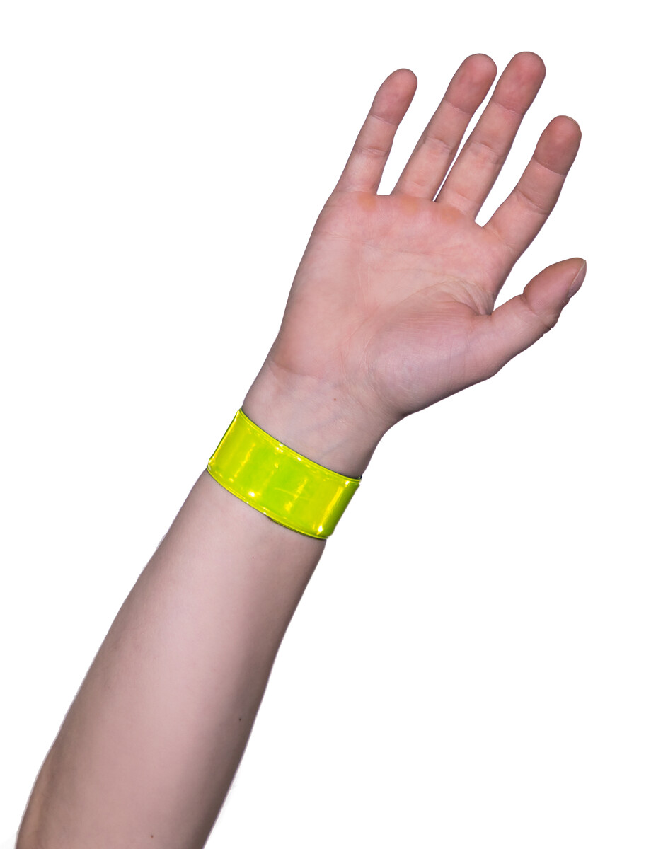 Pásik je vyrobený z pružného materiálu, vďaka čomu ho jednoducho upevníte na telo – ruku, zápästie či členky, ako aj na školskú tašku, kabelku, kočiar či vozík.