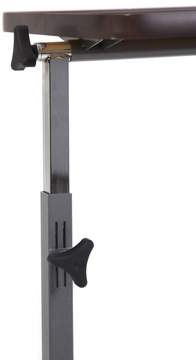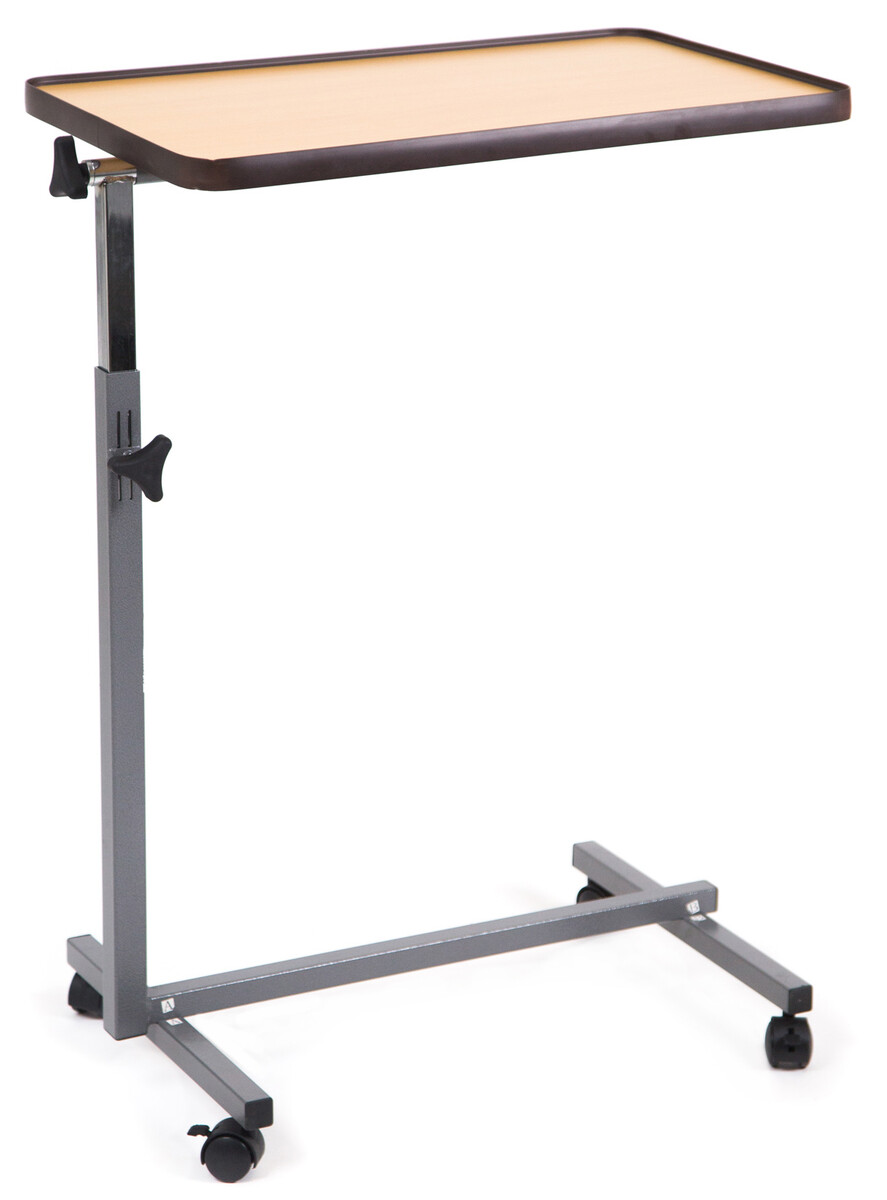 Vďaka kolieskam na spodnej časti je jednoducho ovládateľný a uľahčuje prístup k pacientovi. Stojan má namontované 4 kolieska, pričom dve z nich obsahujú brzdu, aby sa dal stolík zaistiť. Pult je polohovateľný, vyrobený z dreva a má zvýšené okraje, čím sa zabraňuje zošmyknutiu predmetov.