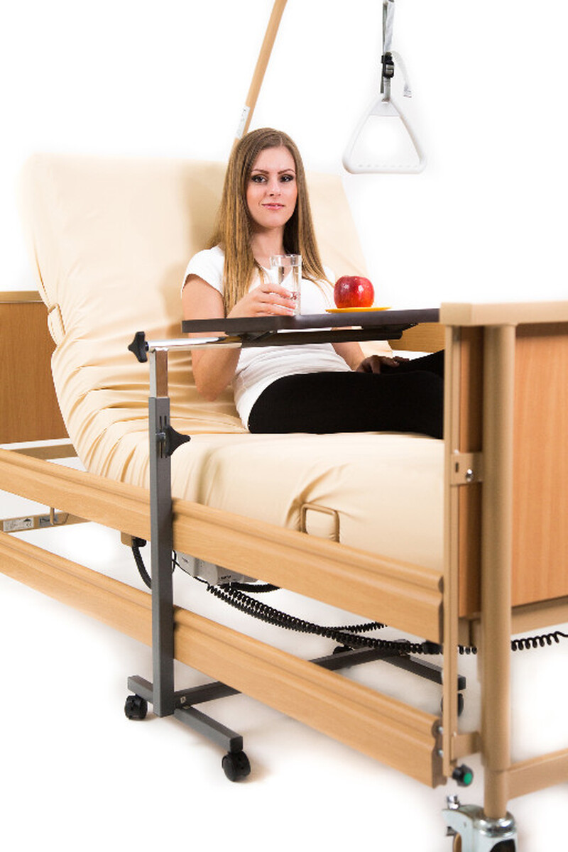 S použitím lôžkového stolíka dokáže pacient vykonávať jednoduchšie činnosti ako jedenie, pitie, čítanie.