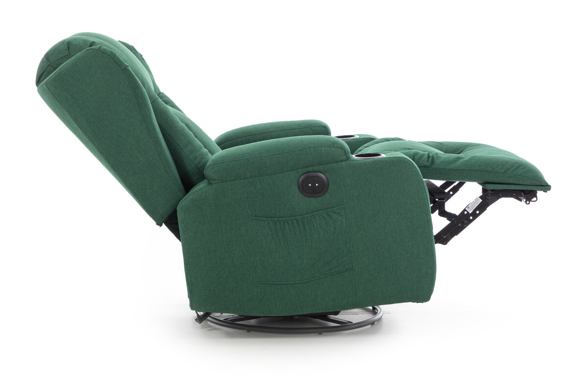 Vďaka vyhotoveniu v trendy smaragdovo-zelenom látkovom dekore sa bude vynímať v každej miestnosti. V základnej polohe poslúži ako klasické interiérové kreslo ideálne na odpočinok, sledovanie televízie či čítanie kníh a v relaxačnej ležiacej polohe sa postará o regeneráciu a uvoľnenie svalstva.