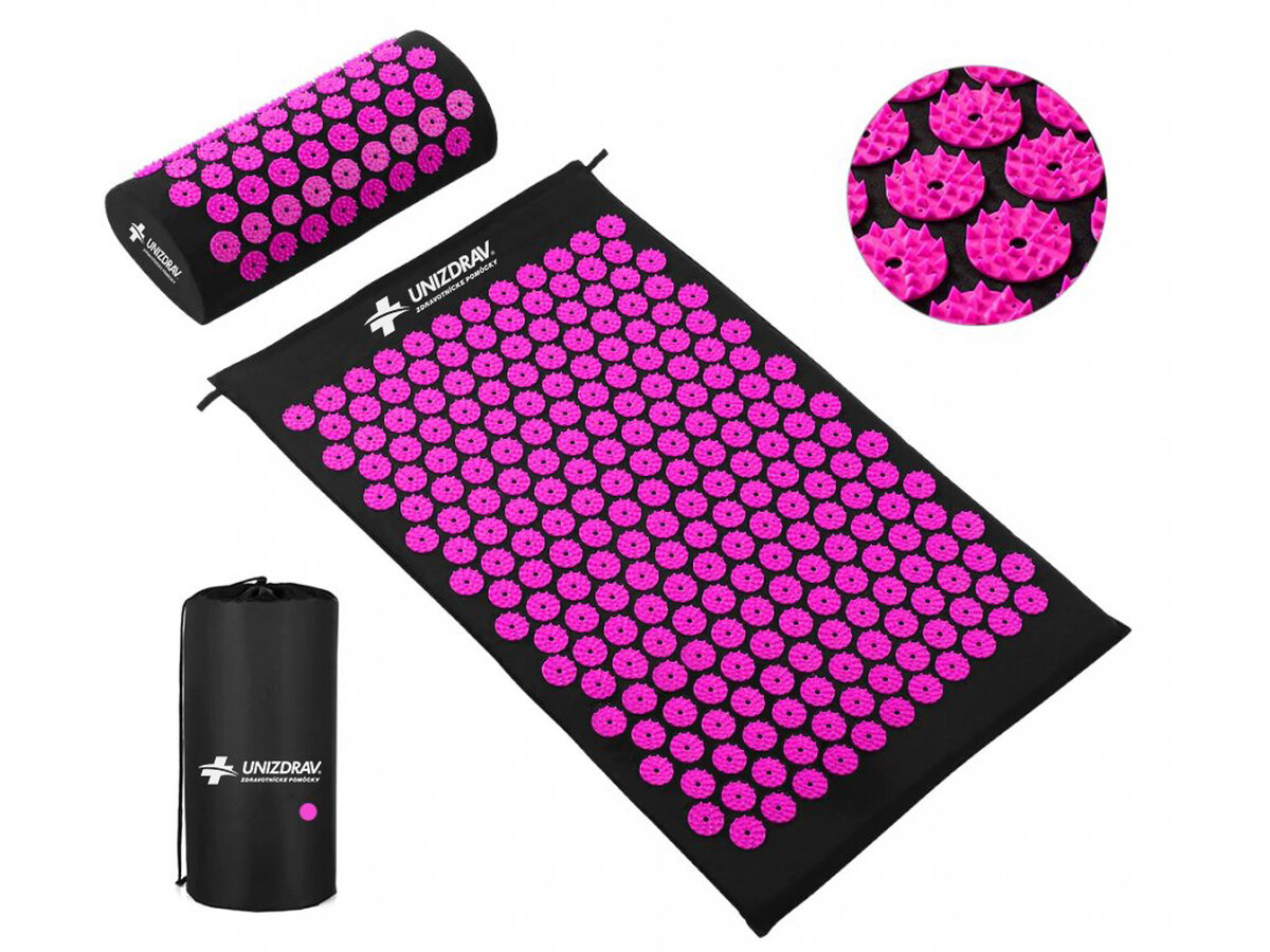 Akupresúrna podložka s vankúšom UNIZDRAV, čierno-ružová