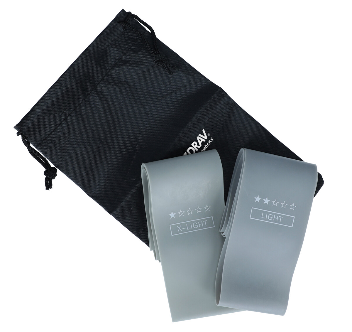 Balenie obsahuje 5 kusov gúm a praktické prenosné vrecko, do ktorého je možné gumy uložiť a vziať so sebou do telocvične, posilňovne, kancelárie či parku.