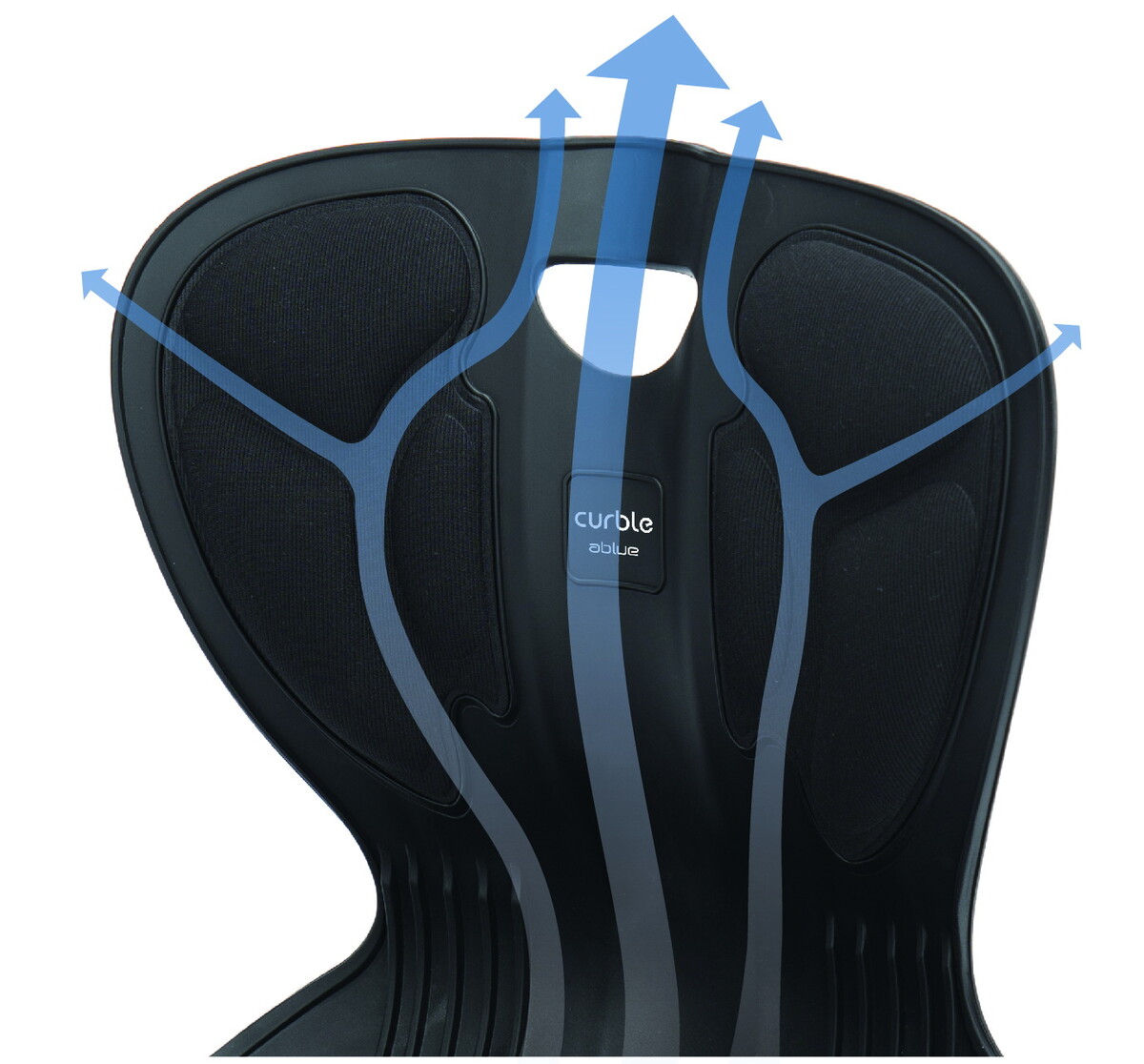 Vďaka vyhotoveniu z pevného plastu, anatomicky tvarovanej výplni z polyuretánovej pamäťovej peny a vzduchovým výklenkom, ktoré slúžia na cirkuláciu vzduchu a predchádzajú poteniu, poskytuje Curble chair stabilné a pohodlné sedenie. Neobsahuje žiadne ťažké kovy ani škodlivé látky nebezpečné pre zdravie.