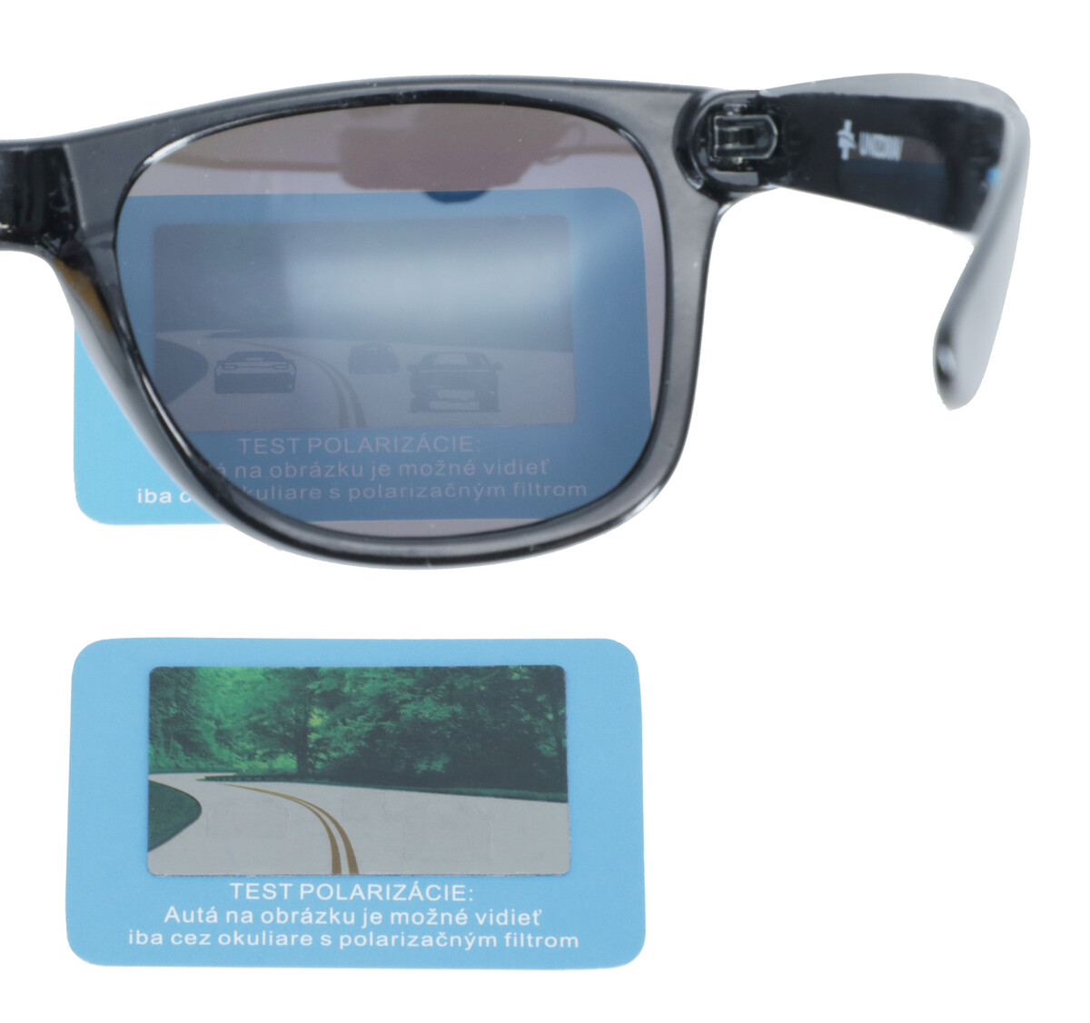 - testovací štítok na overenie polarizačnej funkcie okuliarov