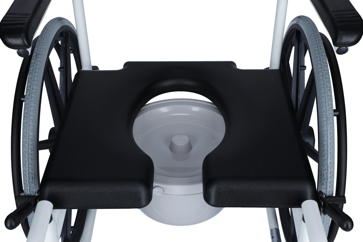 Obsahuje aj toaletné vedierko, ktoré je možné pri sprchovaní z kresla vybrať.