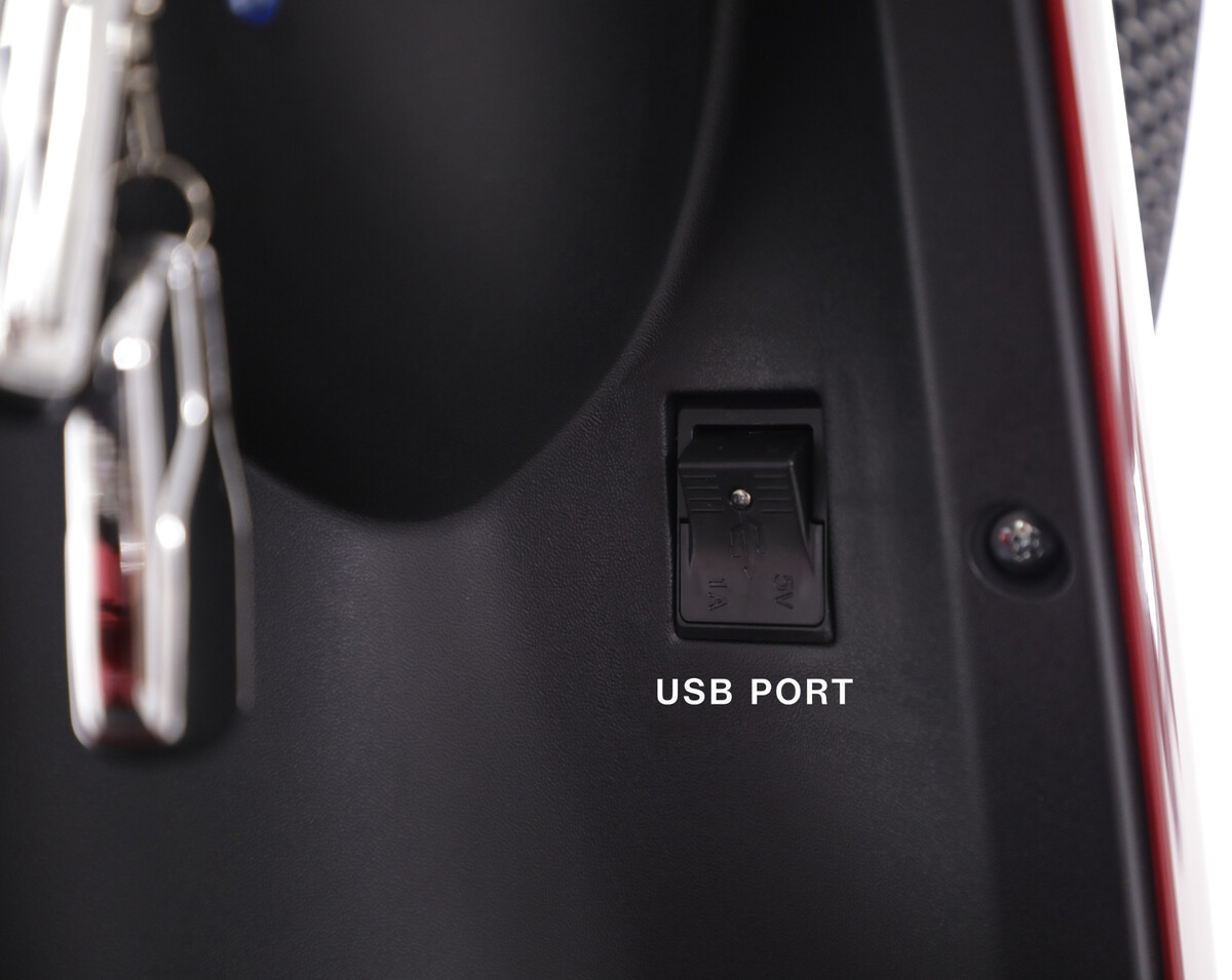 Pri jazde v noci takisto oceníte aj diaľkové svetlá. A pokiaľ sa Vám nečakane vybije telefón, tak skúter je vybavený USB portom - stačí mať iba nabíjací kábel po ruke.