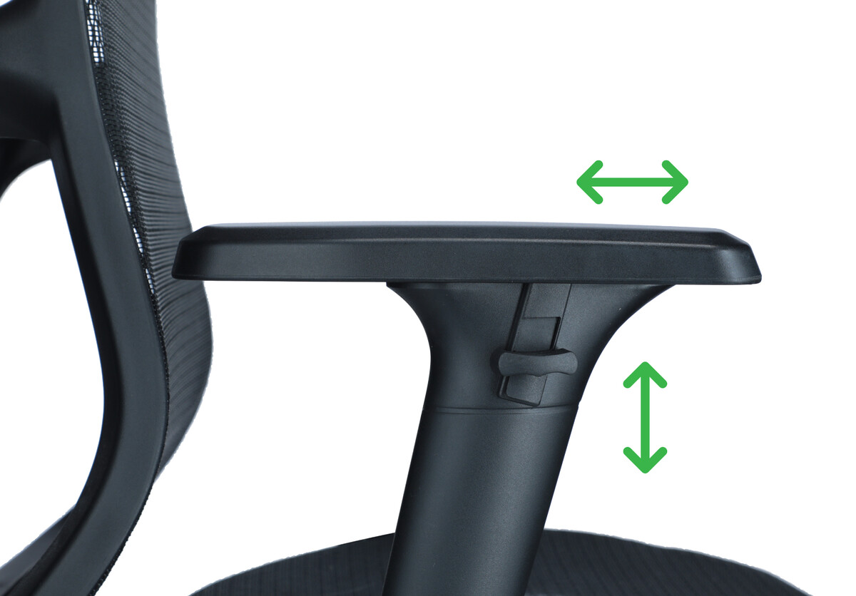 Podrúčky môžu byť upravené ako na výšku, tak aj na šírku. Individuálne nastaviteľné operadlo odľahčuje a podporuje medzistavcové platničky a stavce.