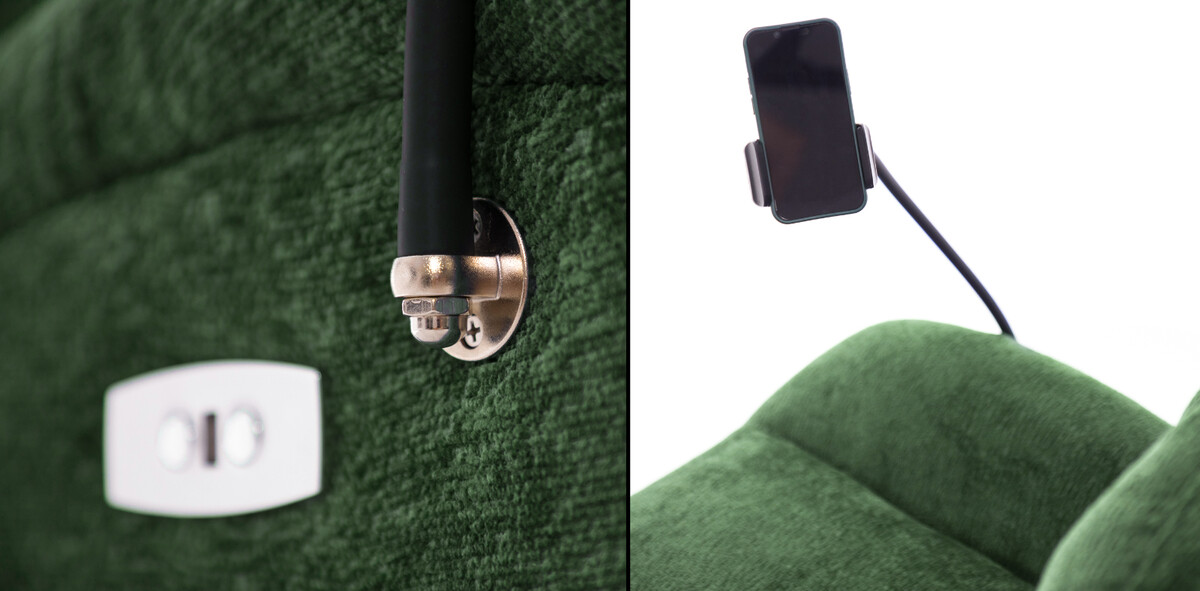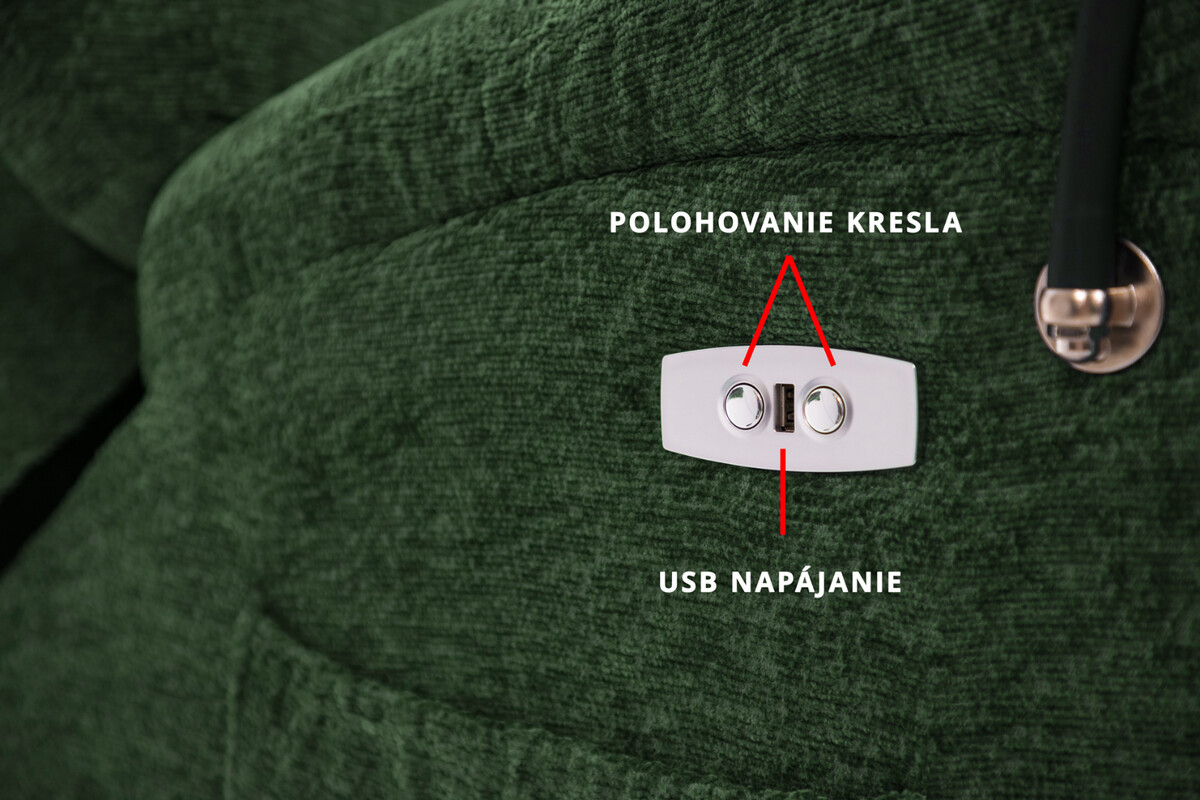 Kreslo je vybavené na dnešnú dobu už priam nevyhnutným USB nabíjacím portom, s ktorým si môžete v prípade potreby nabiť svoj mobilný telefón, tablet a iné USB zariadenia.