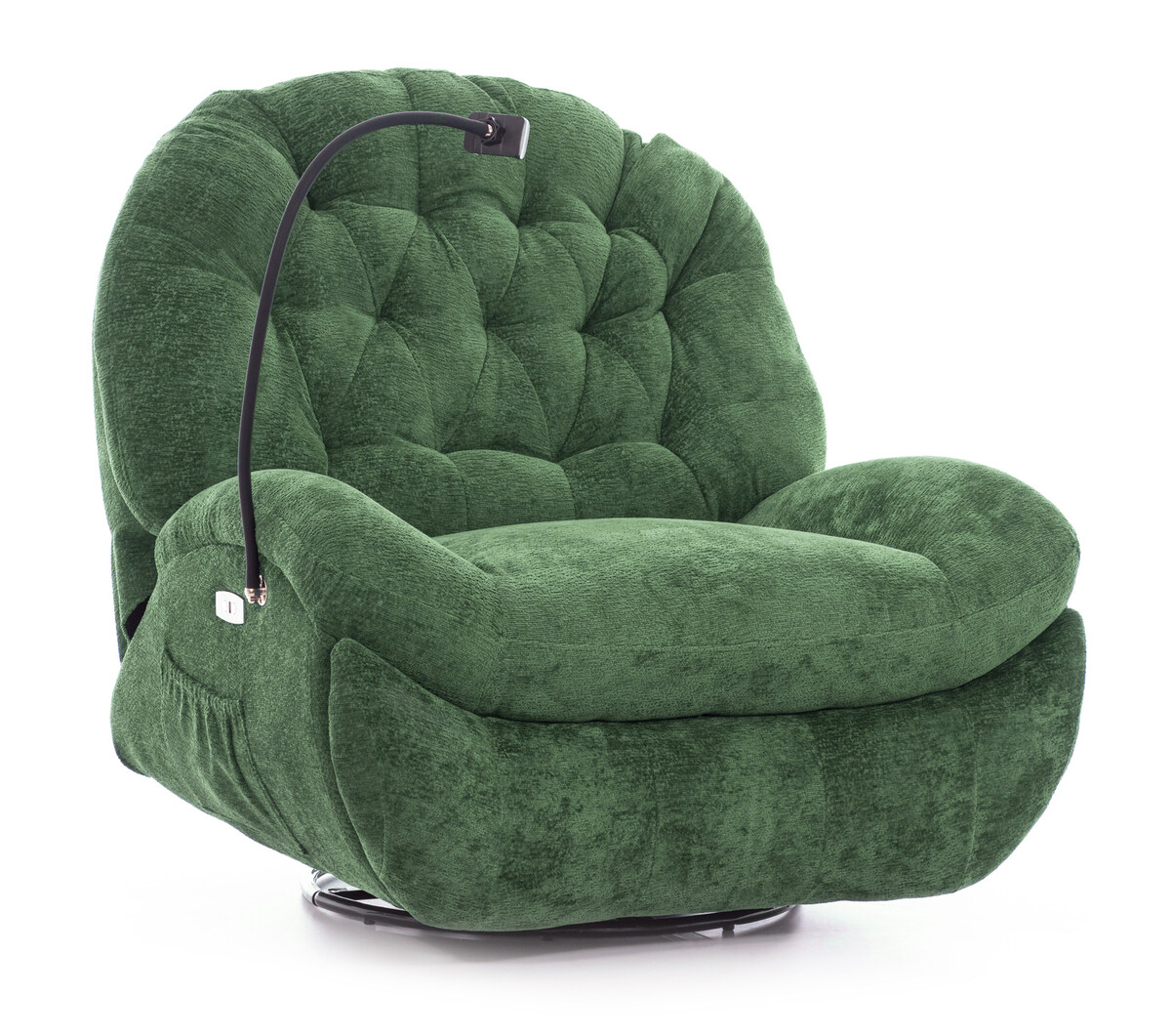 Štýlové polohovateľné kreslo s extra širokým sedom a funkciou hojdania a otáčania pre chvíle pohody a relaxu.