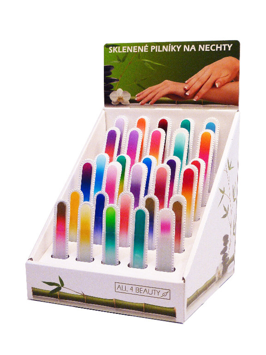 Sklenený pilník s hrúbkou 2 mm slúži na pilovanie a tvarovanie nechtov, pričom zabraňuje ich ďalšiemu štiepeniu.