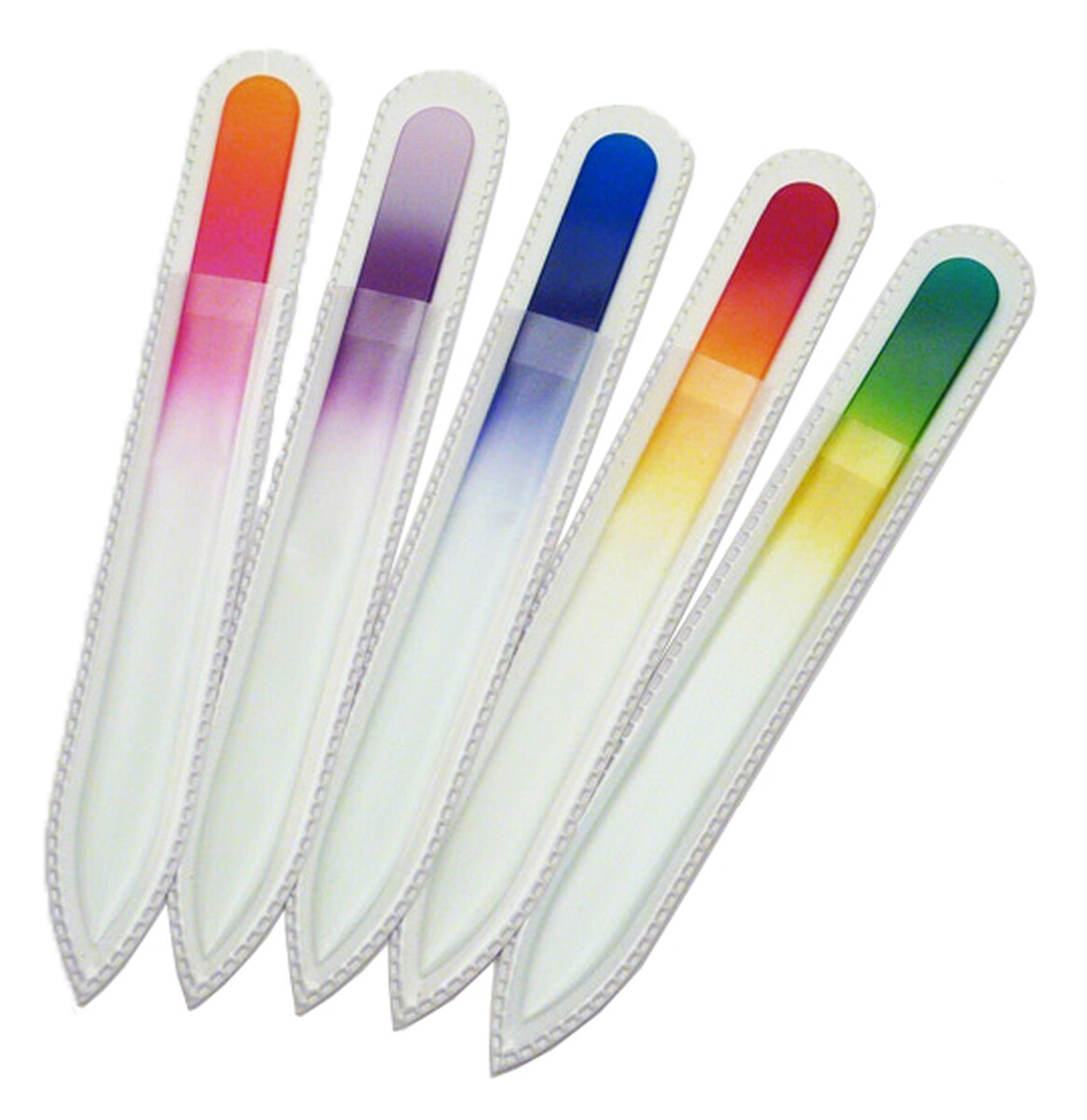 Pilník je v ochrannom PVC púzdre s priehľadnou prednou stranou. Pilníky sú vyrobené v rôznych farebných odtieňoch.