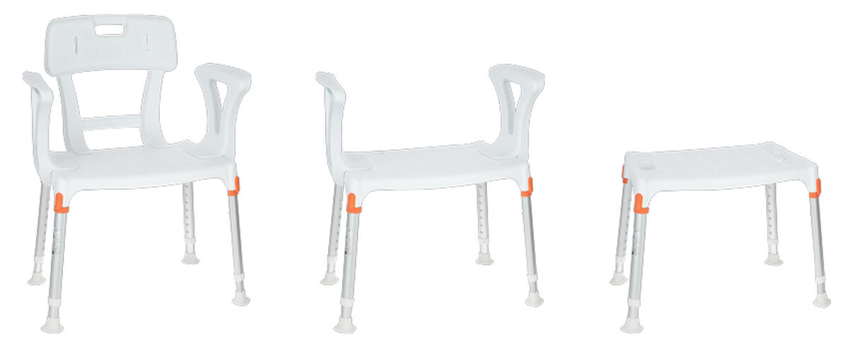 Je možné zostaviť ju v troch rôznych prevedeniach, môžete ju využiť v sprche, vo vani a iných kupeľňových zariadeniach. Stolička je vybavená výškovo nastaviteľnými nožičkami s  protišmykovými nádstavcami. Vďaka nízkej hmotnosti sa stolička dá jednoducho premiestňovať.
