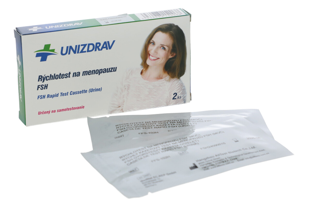 Kazetový test na menopauzu pomáha detegovať folikuly stimulujúceho hormónu (FSH) v moči a vyhodnotiť tak nástup menopauzy.