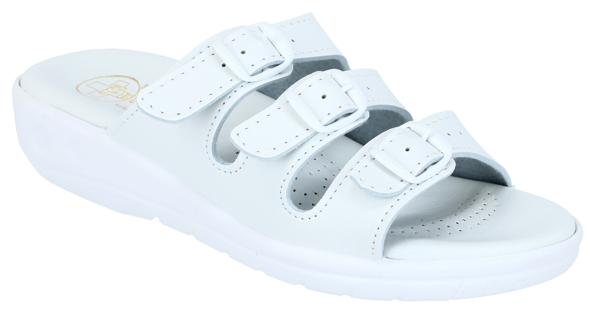 Zdravotná obuv FUSBET 3 hladká predstavuje rehabilitačnú obuv s hladkou vložkou, podporou priečnej a pozdĺžnej klenby a nastaviteľným remienkom.