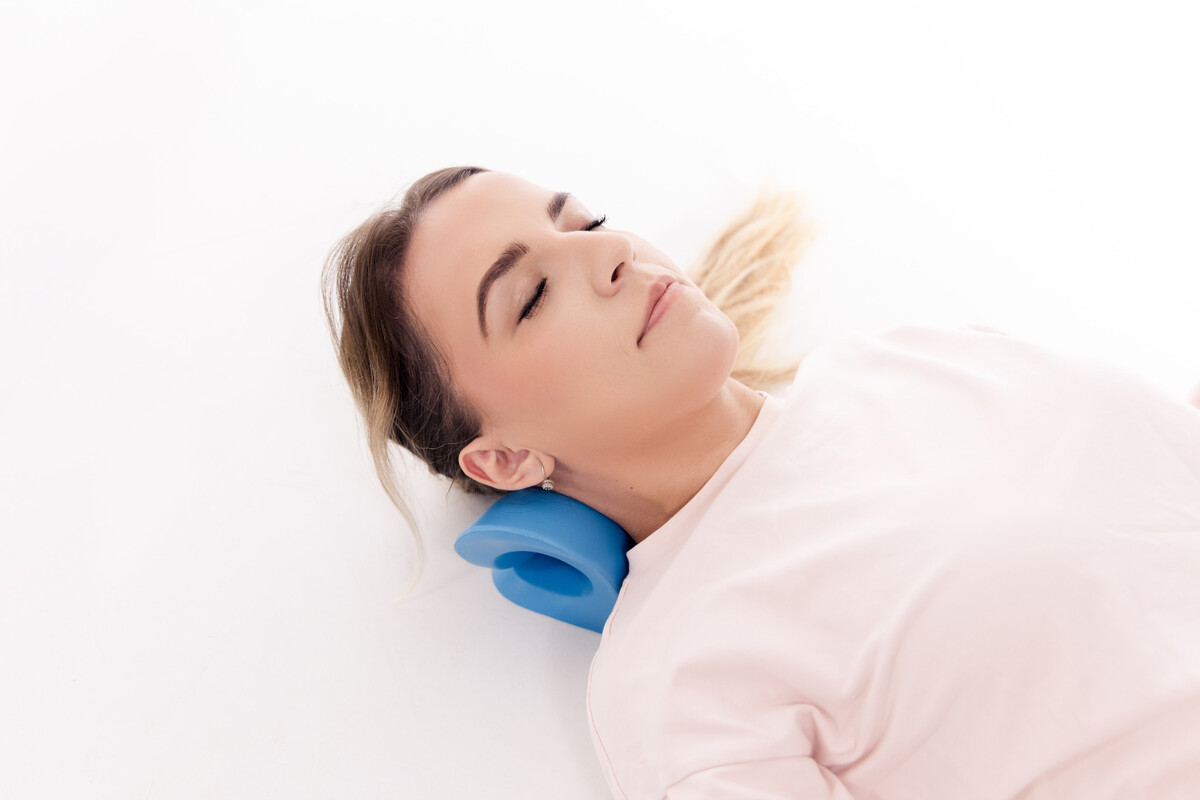 Stačí si naň iba ľahnúť a nechať váhu hlavy jemne natiahnuť svaly horných ramien a prednú časť krku. Odporúčaná doba používania je max. 8 minút.