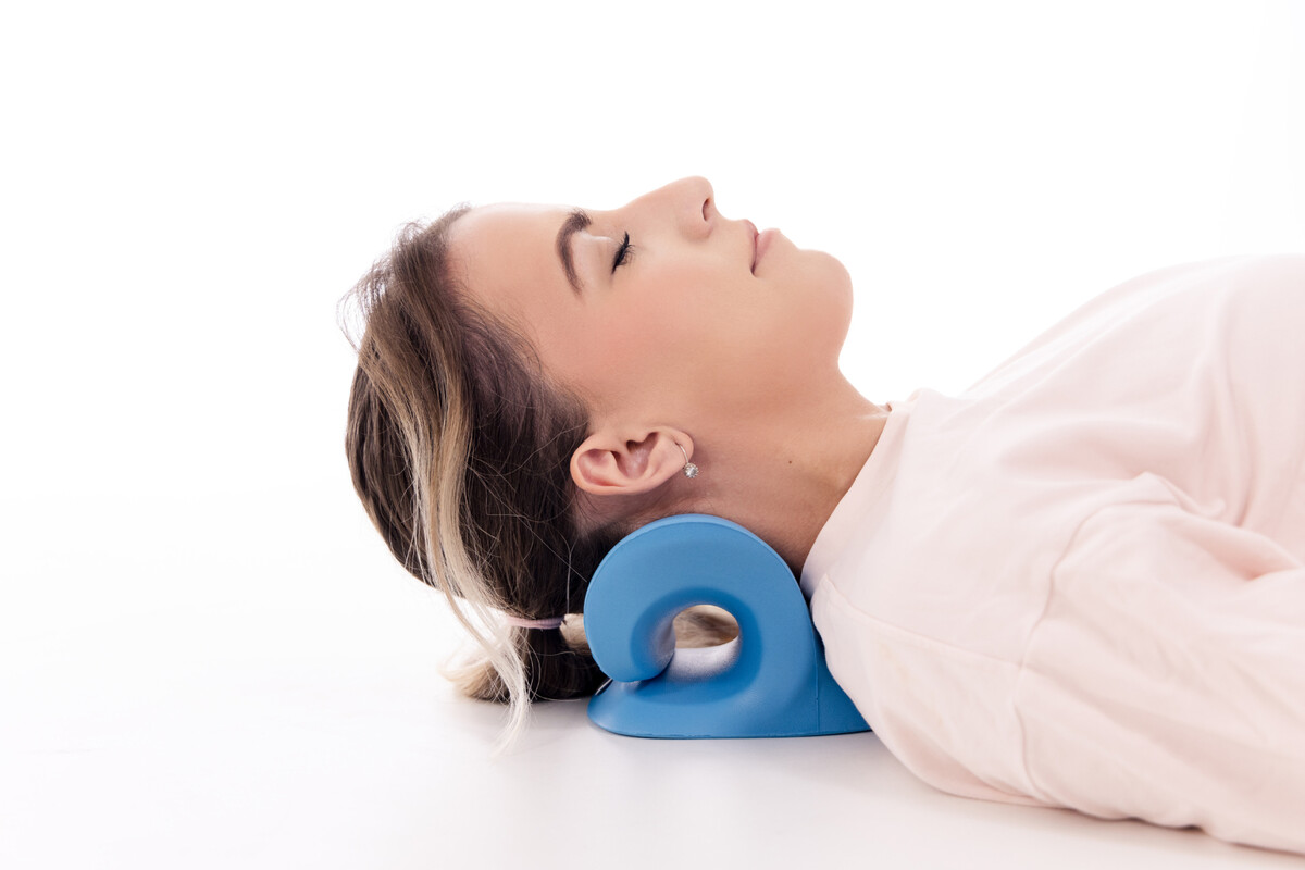 Unikátny naťahovač krku a krčnej chrbtice UNIZDRAV s ergonomickým dizajnom a akupresúrnymi bodmi na pomoc pri bolestiach krku a krčnej chrbtice