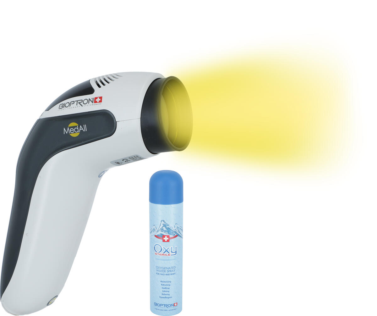 S biolampou Bioptron MedAll je dodávané aj šikovné cestovné puzdro na bezpečné skladovanie a prepravu. Súčasťou balenia je takisto Oxy sprej, ktorý podporuje účinok biolampy a zároveň obnovuje funkciu poškodenej a namáhanej pokožky.