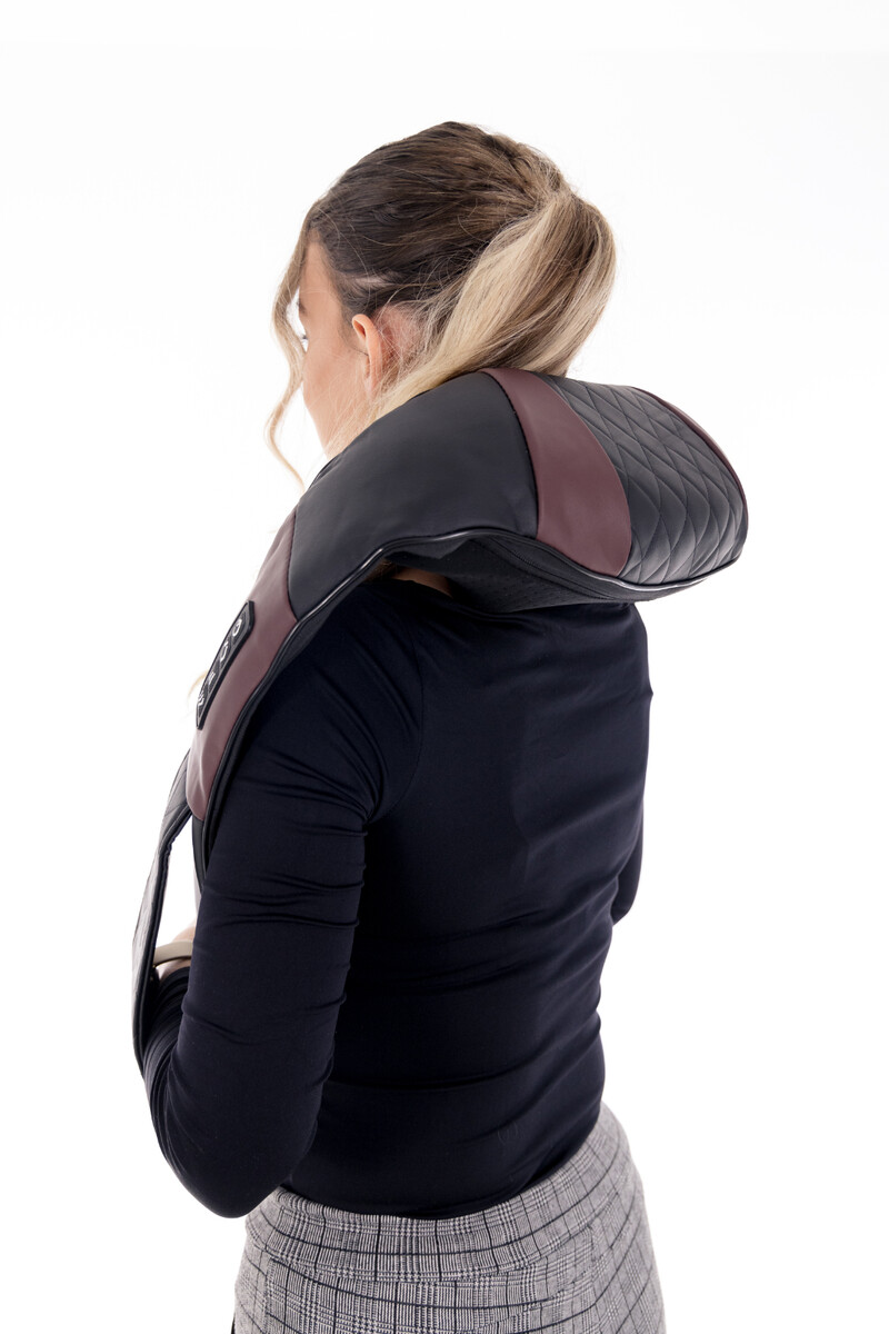 Praktická masážna pomôcka na uvoľnenie stuhnutých a boľavých svalov šije a krku prostredníctvom kombinácie tepla a Shiatsu masáže