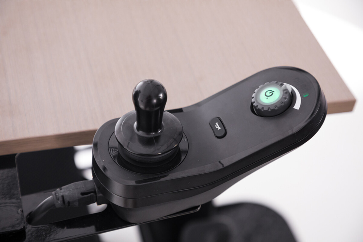 Smer jazdy je korigovaný joystickom a rýchlosť kontrolným panelom doplneným svetelnou indikáciou.