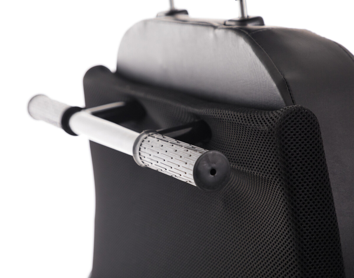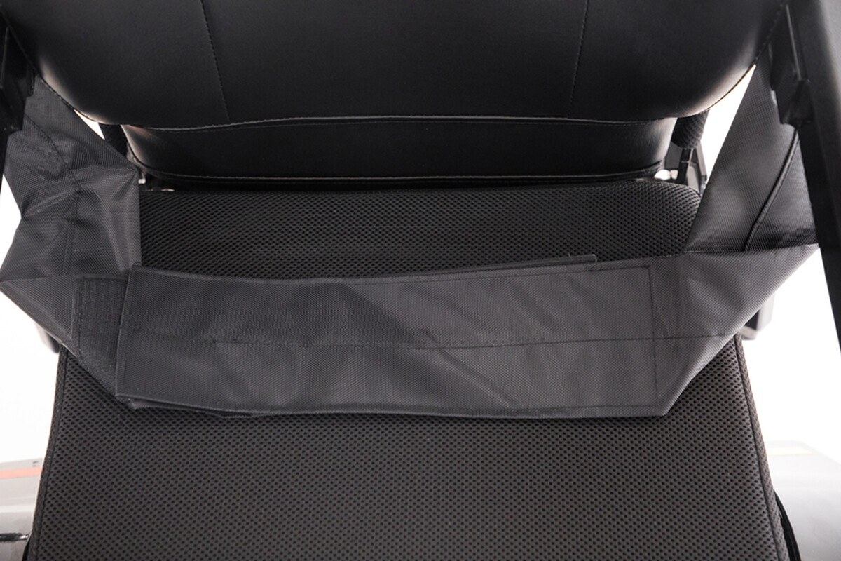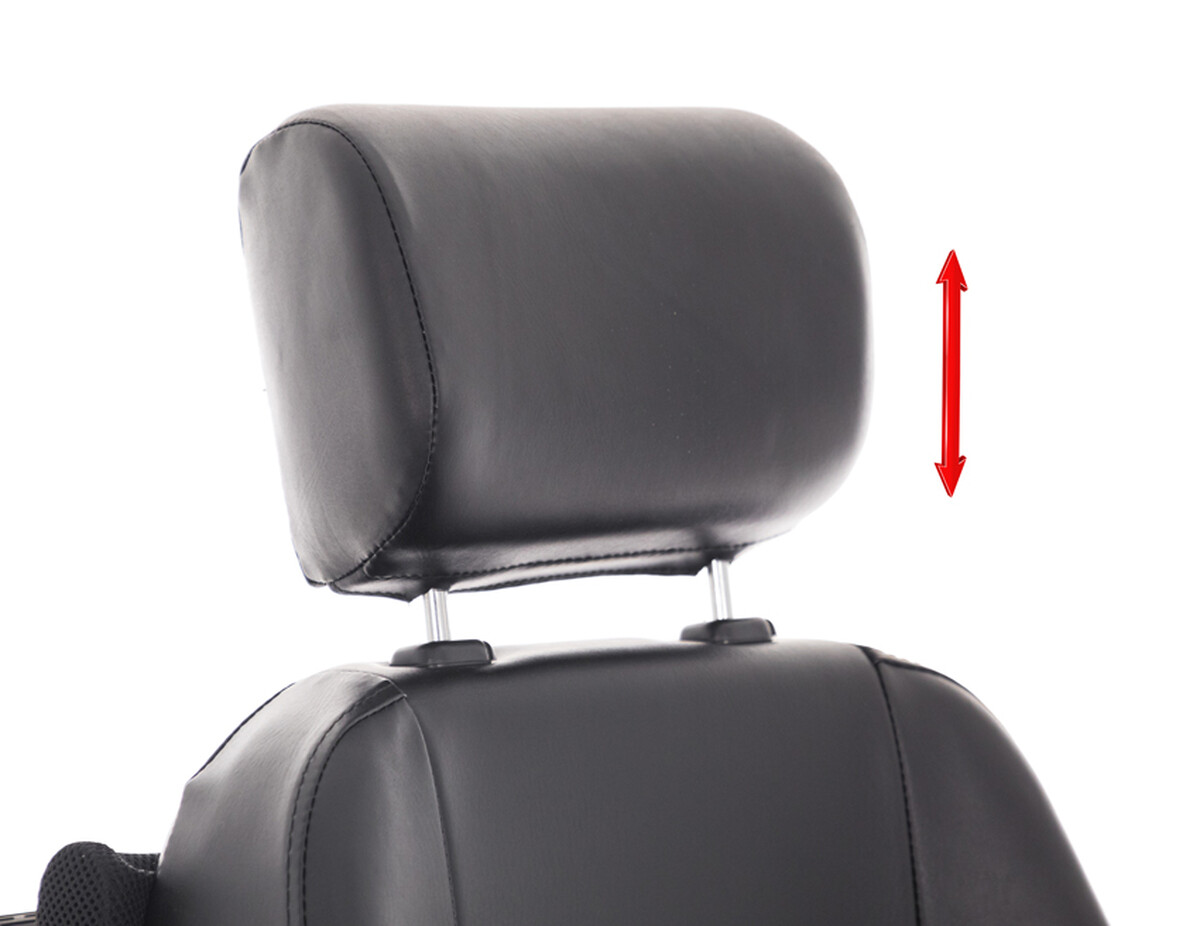 Pohodlie pri používaní invalidného vozíka zaručuje čalúnenie s imitáciou kože, ktorým je potiahnutá výškovo nastaviteľná ergonomická opierka hlavy, chrbta a lakťové opierky. Sedaciu časť tvorí mäkký penový podsedák so zipsovateľným poťahom z priedušnej sieťoviny.