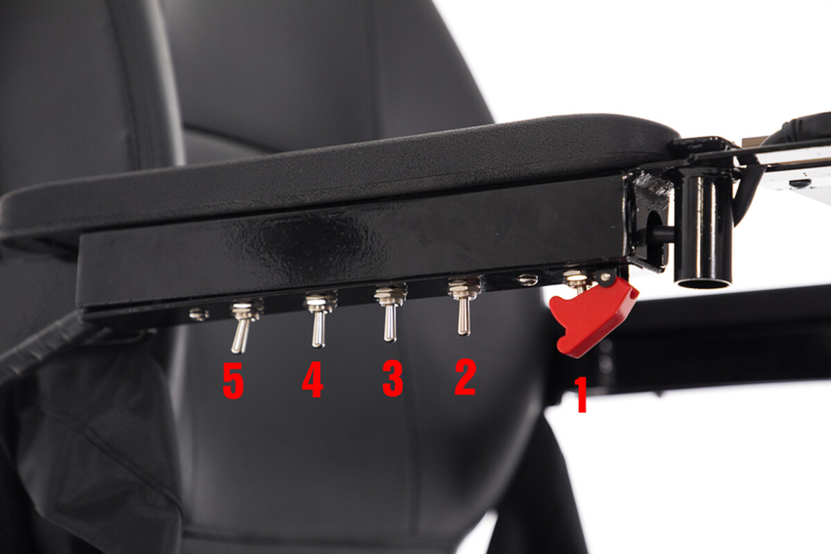 Elektrický vertikalizačný vozík disponuje viacerými funkciami polohovania. Plynulá zmena do sedu, ľahu a stoja vrátane nastavenia opierky nôh a osvetlenia je ovládaná prostredníctvom 5 samostatných pák, ktoré sú umiestnené pod opierkou ruky na pravej strane. Polohovanie je takisto možné aj zablokovať.