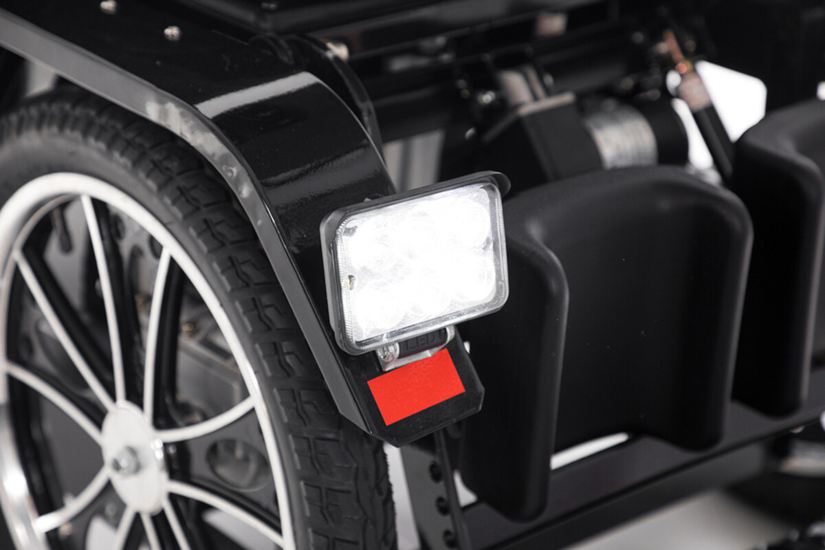 Vďaka plne automatickej elektromagneticej brzde bude každý presun bezpečný. Doplňujúcimi bezpečnostnými prvkami sú odrazové sklá, LED osvetlenie a klaksón.