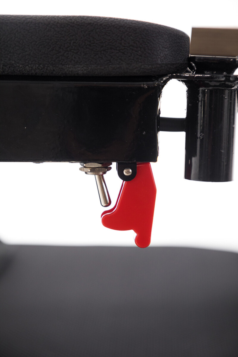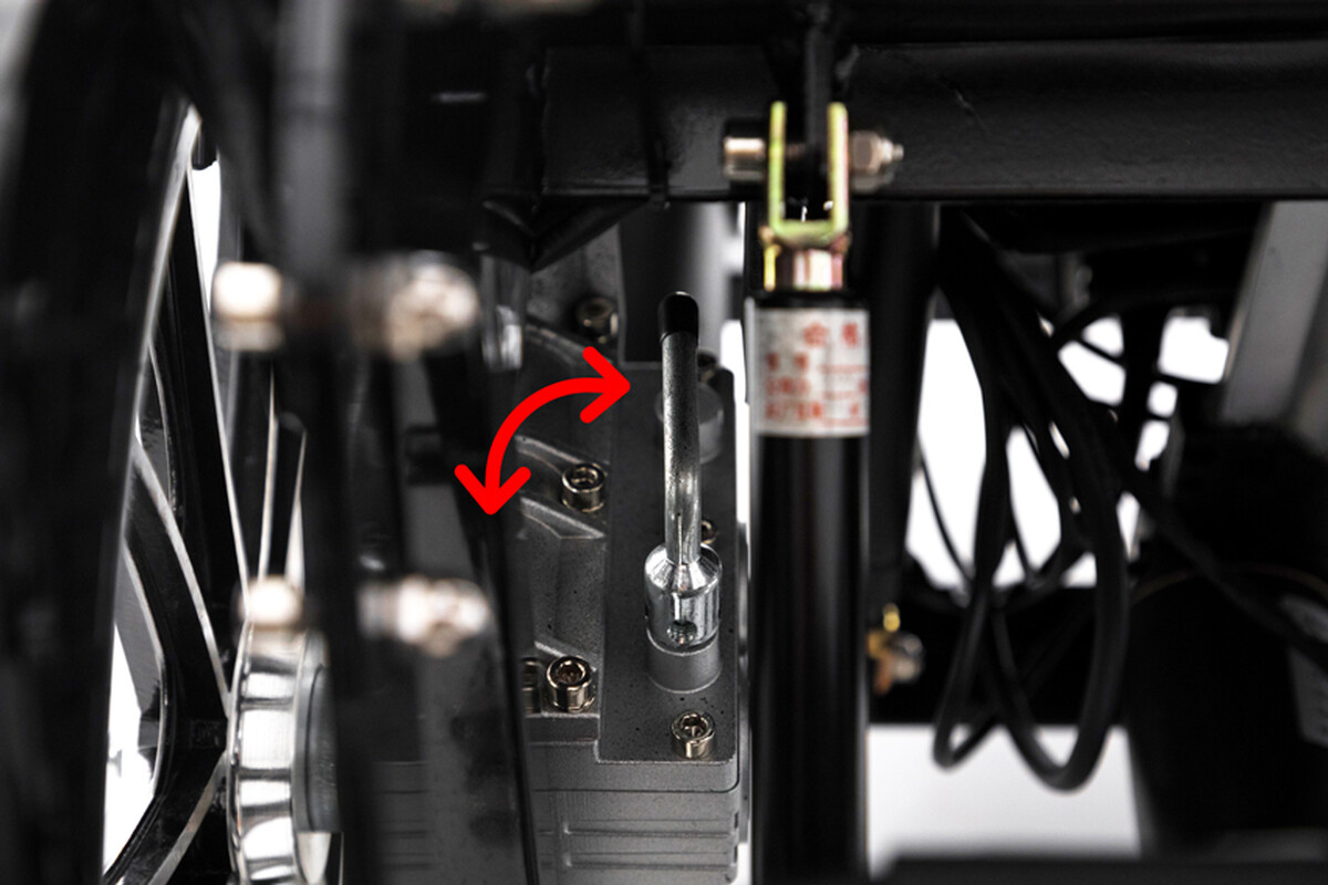 V prípade potreby presunu bez elektromotra, napríklad po vybití batérie, stačí preklopiť páky, ktoré sú umiestnené v spodnej časti konštrukcie vozíka.