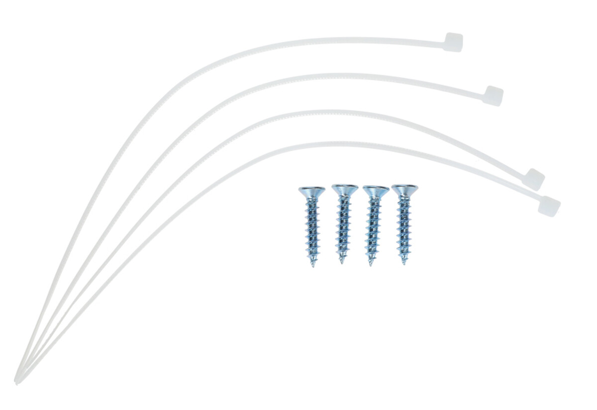 V balení nájdete aj 4 skrutky a sťahovacie pásky, ktoré slúžia na ešte stabilnejšie upevnenie k roštu.