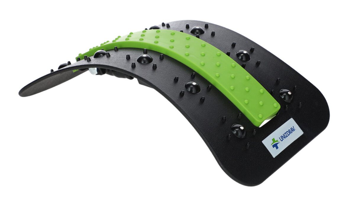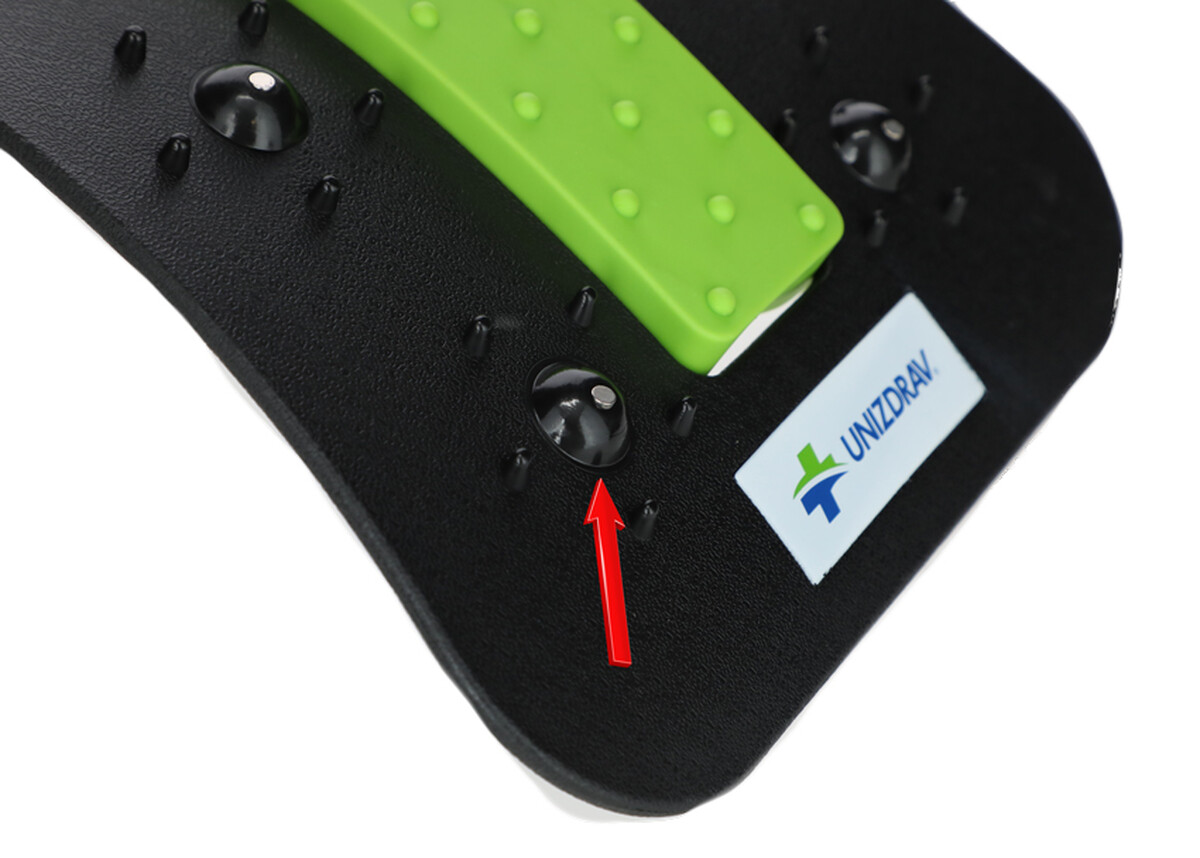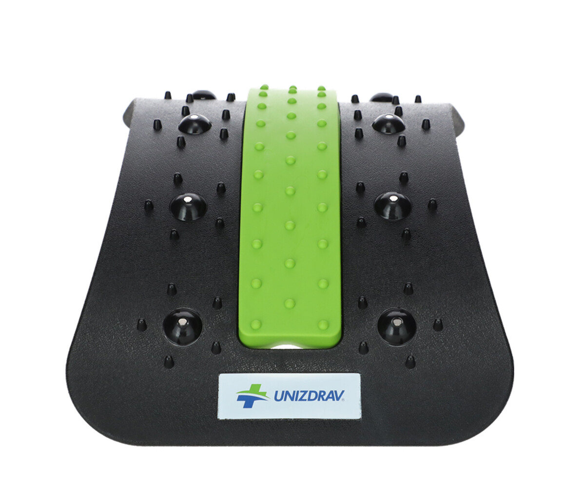 Naťahovač chrbtice UNIZDRAV PRO má na povrchu akupresúrne výbežky, ktoré jemne masírujú chrbát váhou vlastného tela. Podporujú cirkuláciu krvi a stimulujú akupresúrne body, čím zvyšujú účinnosť strečingových cvičení.