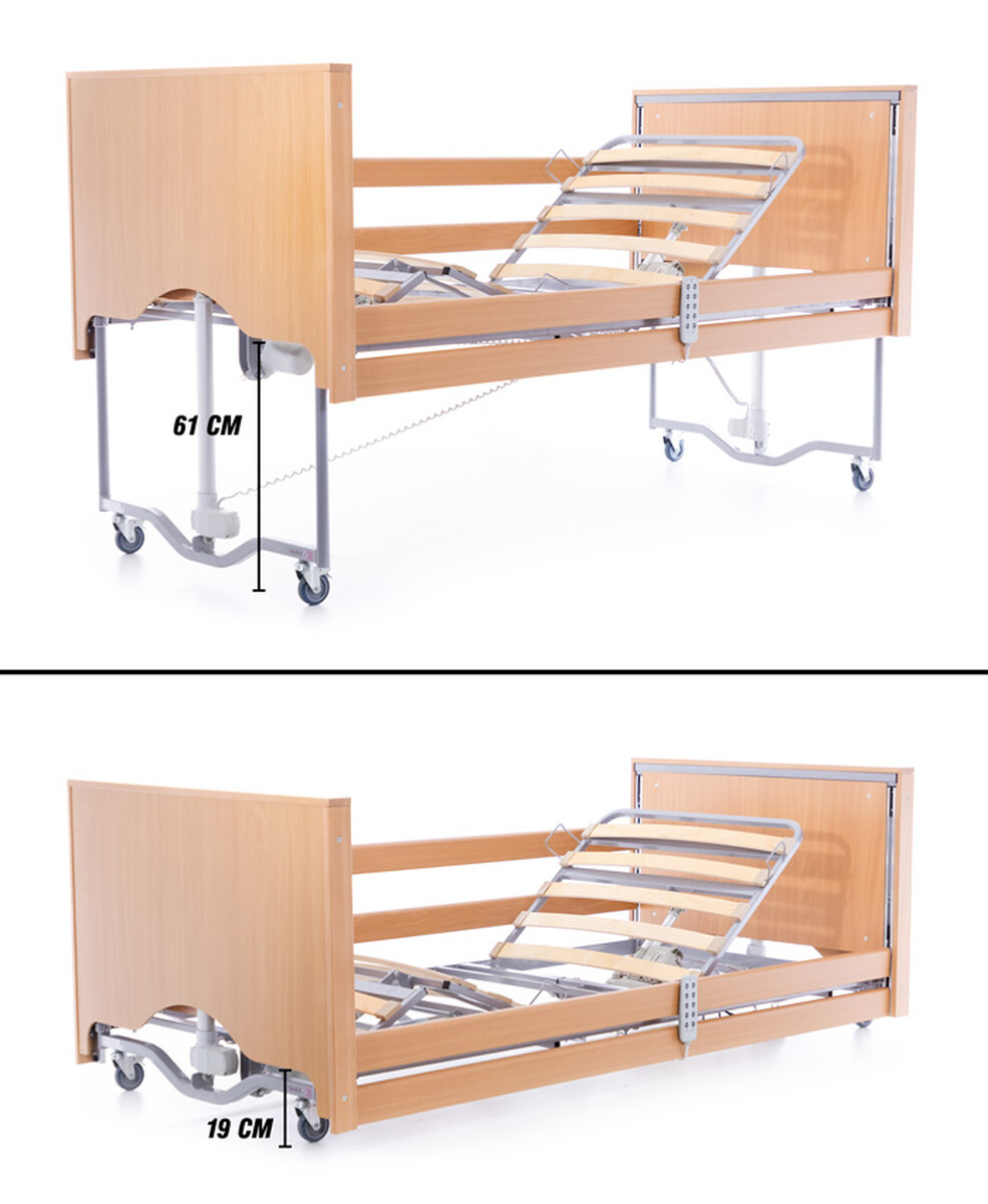 Posteľ je vybavená zníženým polohovaním, čo uľahčuje presun z lôžka na vozík či stoličku. Výška roštu sa dá nastaviť v rozpätí 19 – 61 cm.