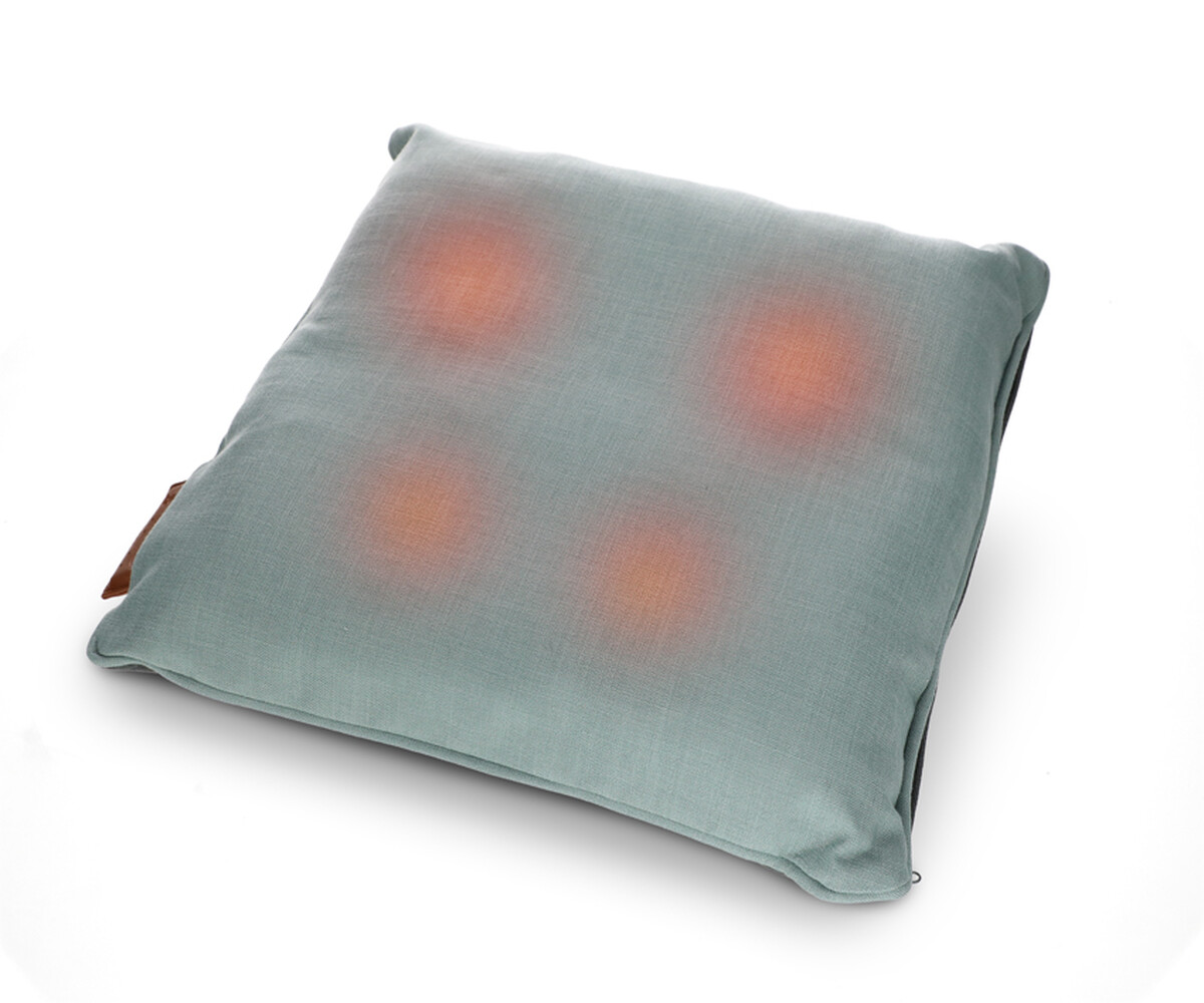 Bezdrôtový masážny vankúš so 4 rotačnými hlavicami a 2 vyhrievacími špirálami na individuálnu Shiatsu masáž v pohodlí domova.