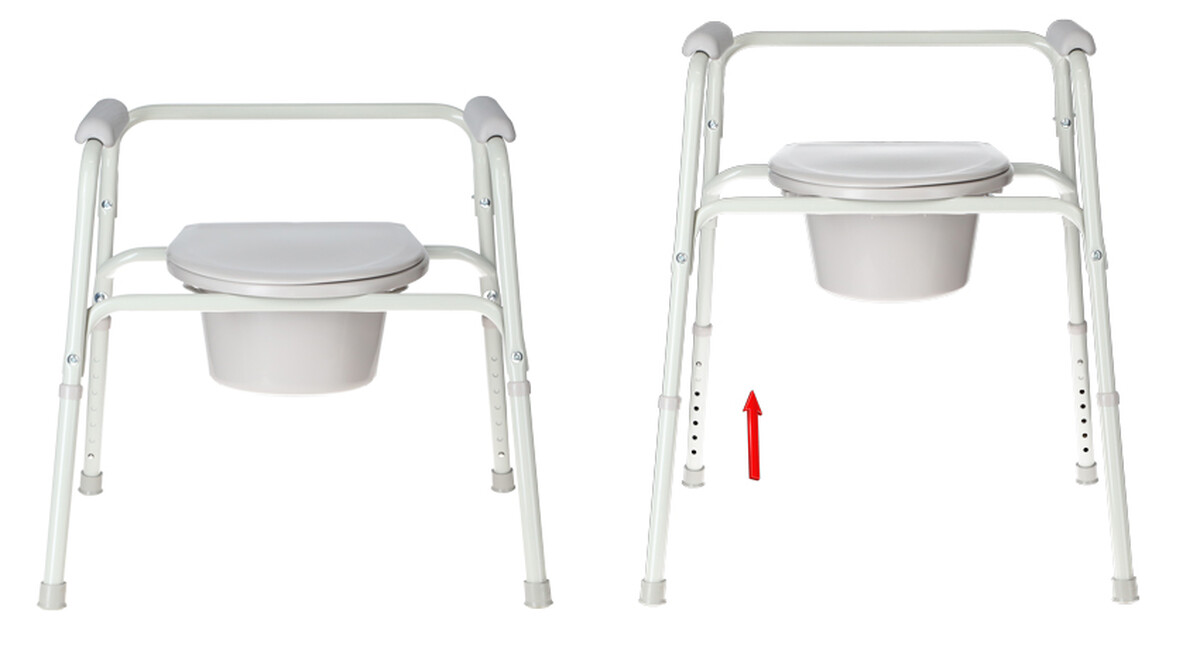 Výškovo nastaviteľná toaletná stolička slúži ako náhrada WC pre pacientov so zníženou pohyblivosťou.