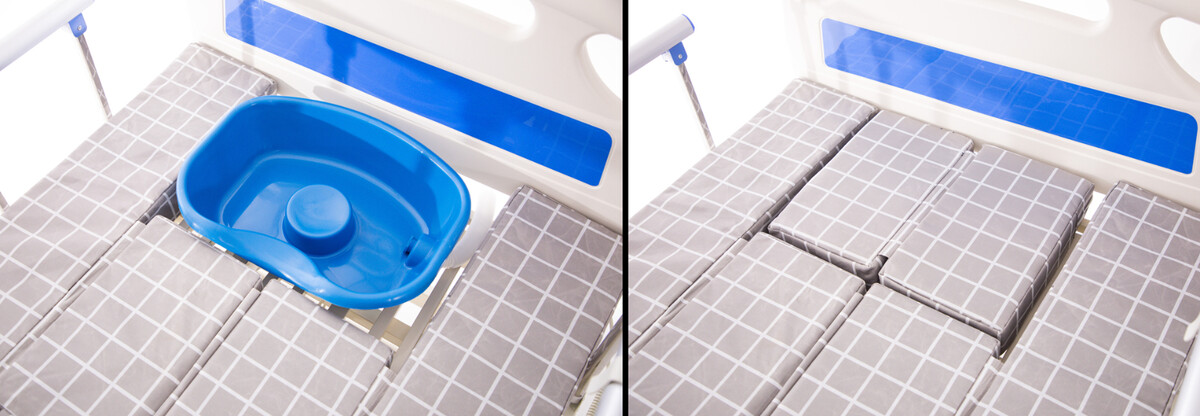 Polohovateľný náhradný matrac s integrovaným otvorom na toaletu zvyšuje komfort ležiacim pacientom a ošetrovateľom zjednodušuje starostlivosť o hygienu pacienta, lôžka aj jeho okolia.
